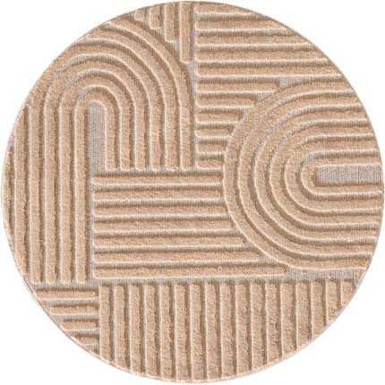 Hochflor Teppich, Geometrisch Design, Farbe Creme, Teppich für Wohnzimmer, Rücken aus Jute, Größe: 160 cm Rund