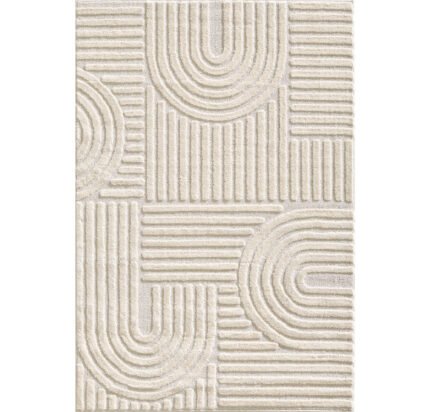 Hochflor Teppich, Skandinavischer Boho, Farbe Beige, Teppich für Wohnzimmer, Rücken aus Jute, Größe: 80 x 250 cm