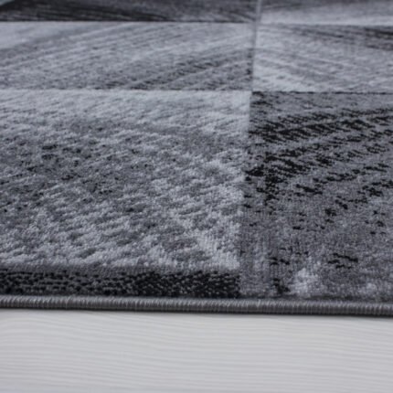 Kurzflor Teppich, Geometrisch Design, Farbe Grau, Teppich für Wohnzimmer, Rücken aus Jute, Größe: 80 x 300 cm