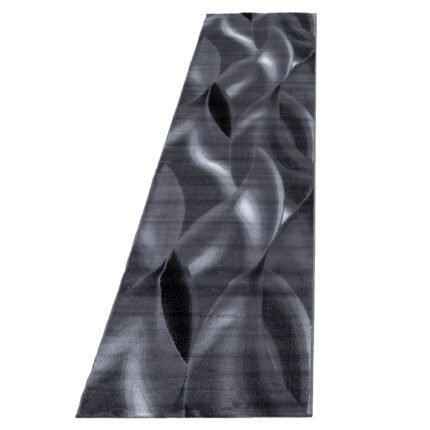 Kurzflor Teppich, Abstrakt Wellen Design, Farbe Schwarz, Teppich für Wohnzimmer, Rücken aus Jute, Größe: 80 x 300 cm