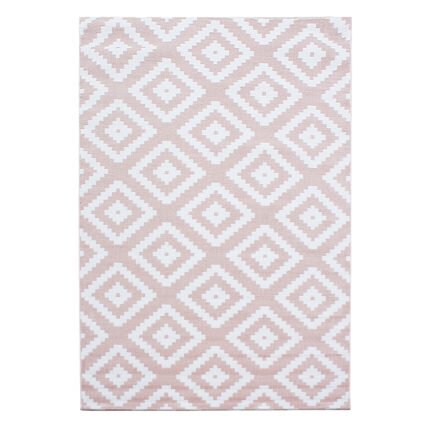 Kurzflor Teppich, Geometrisch Design, Farbe Pink, Teppich für Wohnzimmer, Rücken aus Jute, Größe: 80 x 150 cm