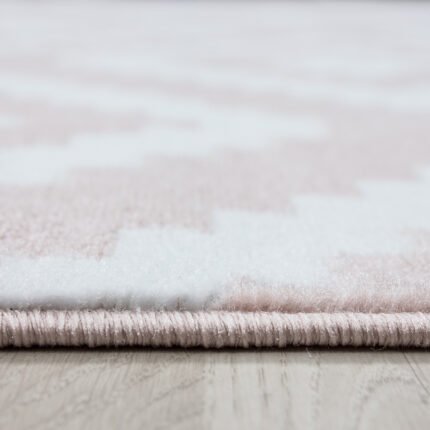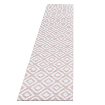 Kurzflor Teppich, Geometrisch Design, Farbe Pink, Teppich für Wohnzimmer, Rücken aus Jute, Größe: 80 x 300 cm