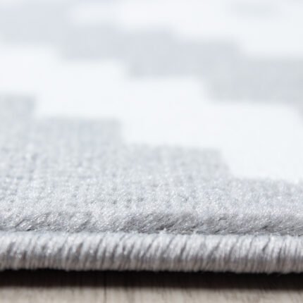 Kurzflor Teppich, Geometrisch Design, Farbe Grau, Teppich für Wohnzimmer, Rücken aus Jute, Größe: 80 x 300 cm