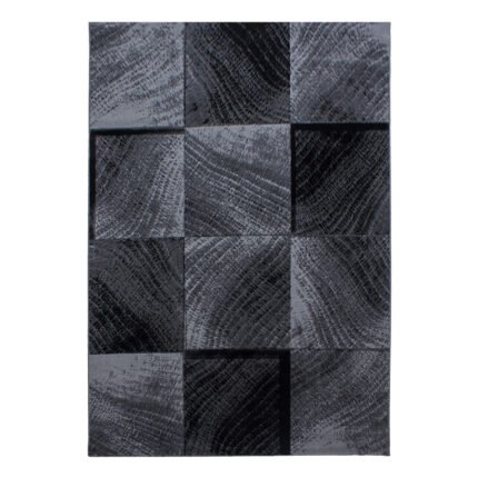 Kurzflor Teppich, Abstrakt Kariert Design, Farbe Schwarz, Teppich für Wohnzimmer, Rücken aus Jute, Größe: 80 x 150 cm