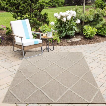 Outdoor Teppich, Berber Design, Farbe Beige, Teppich für Terasse-Balkon-Küche, Rücken aus Polypropylen, Größe: 120 cm x 170 cm