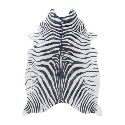 Waschbarer Teppich, Tigerfell imitat, Farbe Schwarz, Teppich für Wohnzimmer, Rücken aus Wildleder, Größe: 100 cm x 135 cm