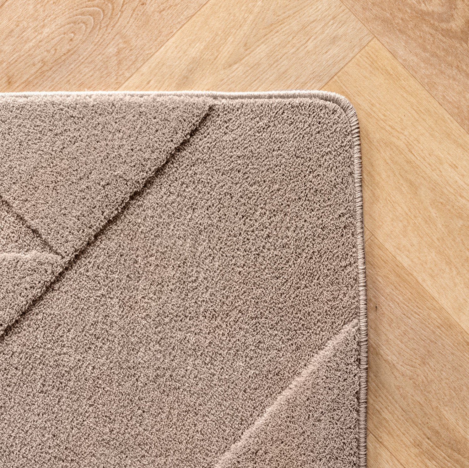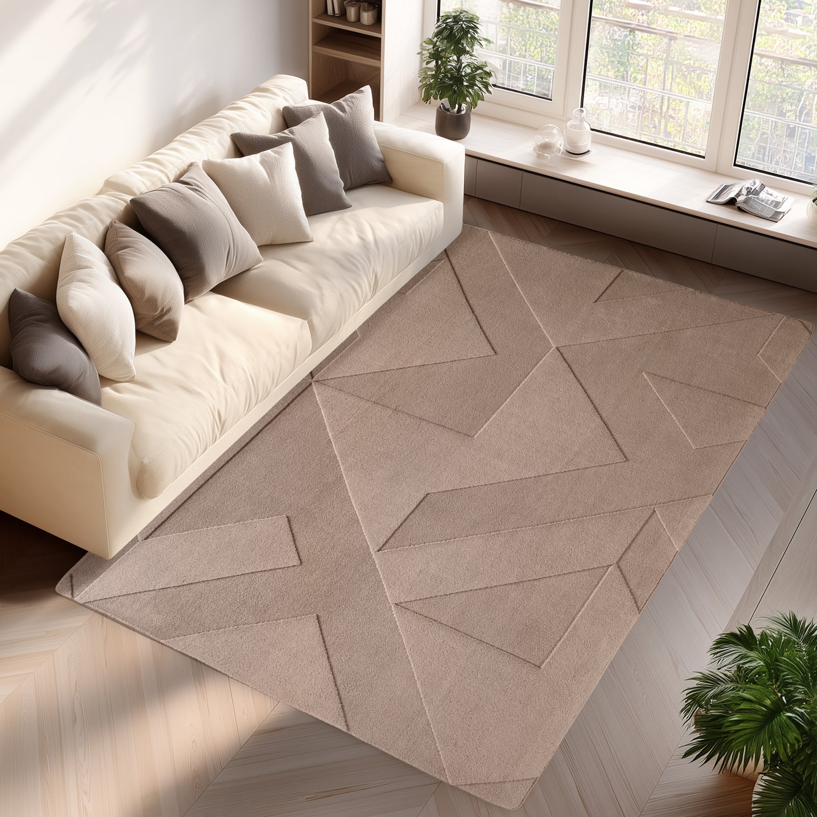Boho Teppich mit Geometrischem Design, Einfarbig Beige 160×230 cm, Weicher & Pflegeleichter Deko Teppich, Waschbarer Teppich mit 3D-Effekt für Wohnzimmer und Schlafzimmer