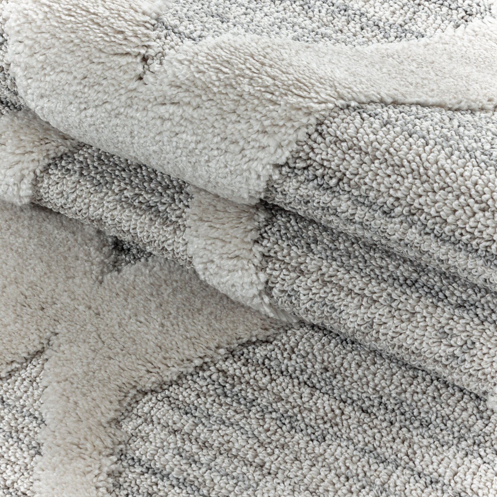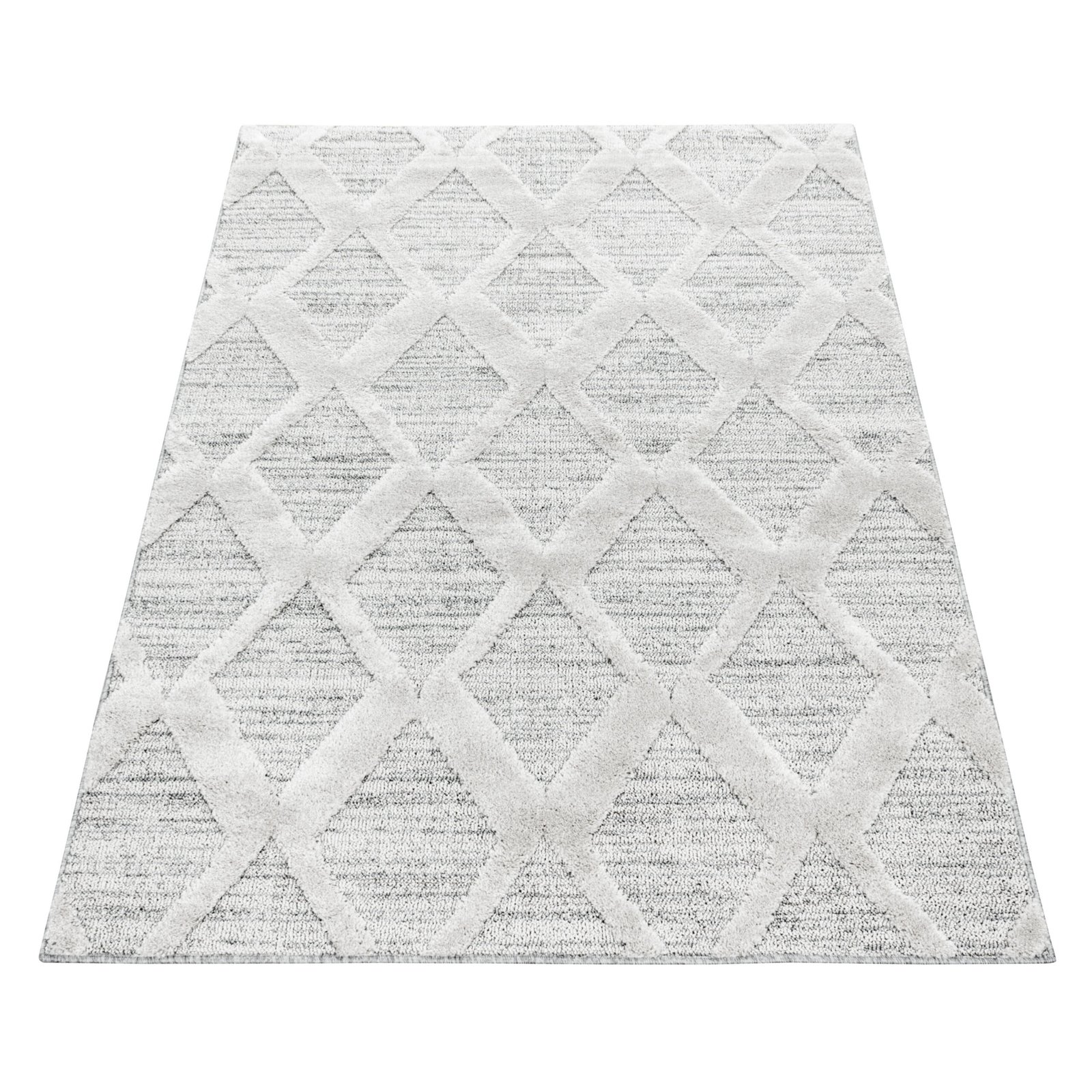 Hochflor Teppich, Boho-Design, Farbe Grau, Teppich für Wohnzimmer, Rücken aus Jute, Größe: 140 x 200 cm