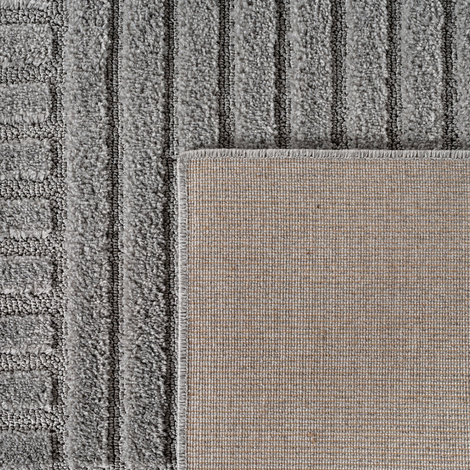 Hochflor Teppich, Skandinavischer Boho, Farbe Silber, Teppich für Wohnzimmer, Rücken aus Jute, Größe: 200 x 290 cm