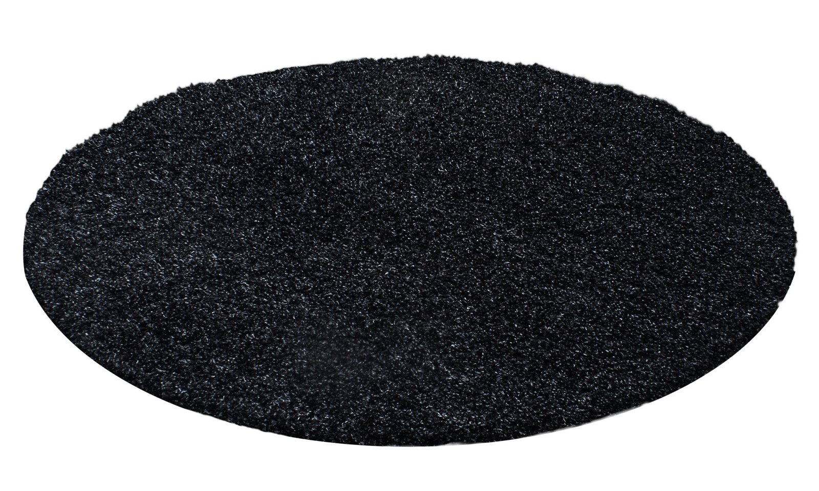 Hochflor Teppich, Unicolor – Einfarbig, Farbe Anthrazit, Teppich für Wohnzimmer, Rücken aus Jute, Größe: 80 cm Rund