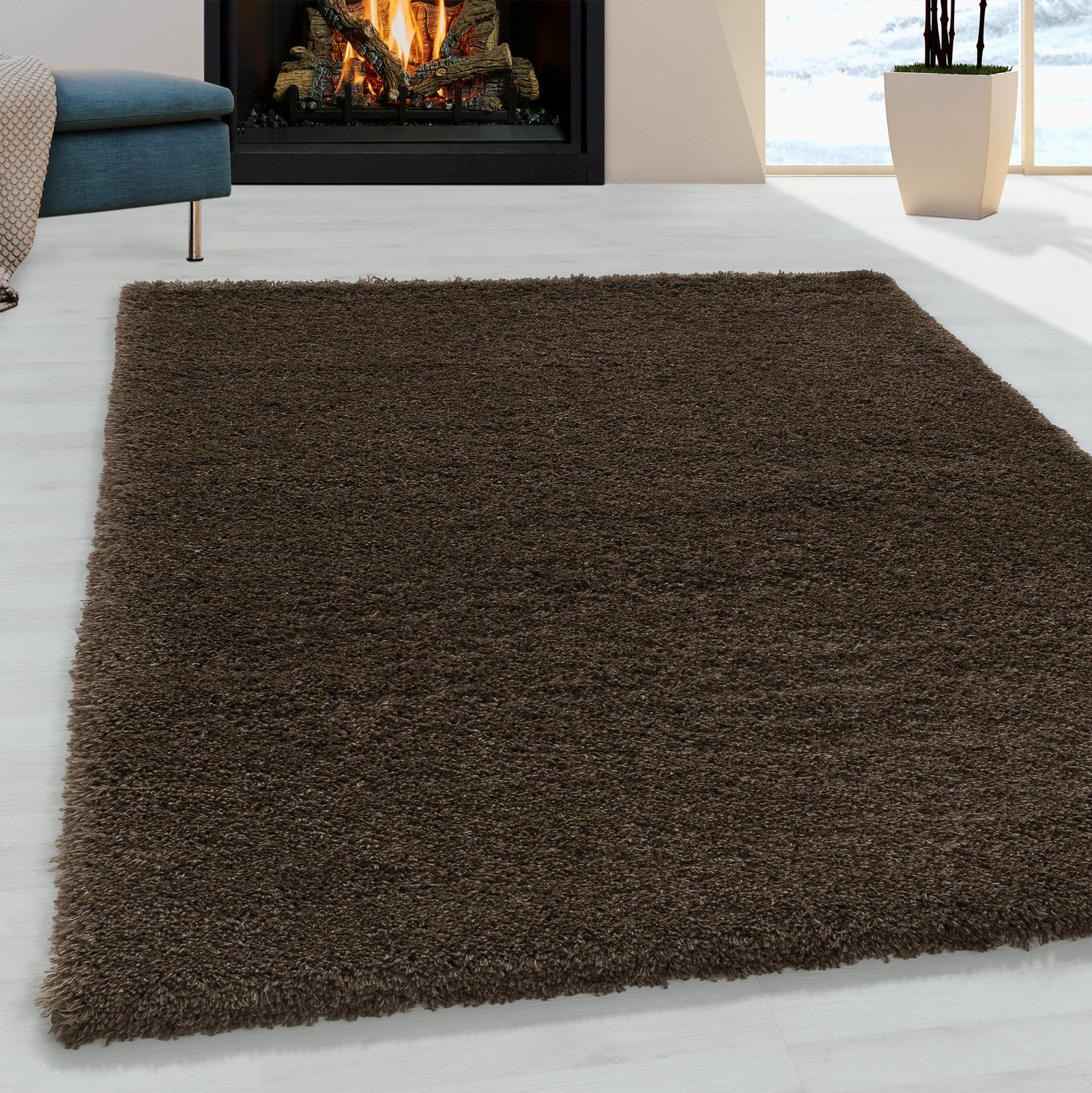 Hochflor Teppich, Unicolor – Einfarbig, Farbe Braun, Teppich für Wohnzimmer, Rücken aus Jute, Größe: 140 x 200 cm
