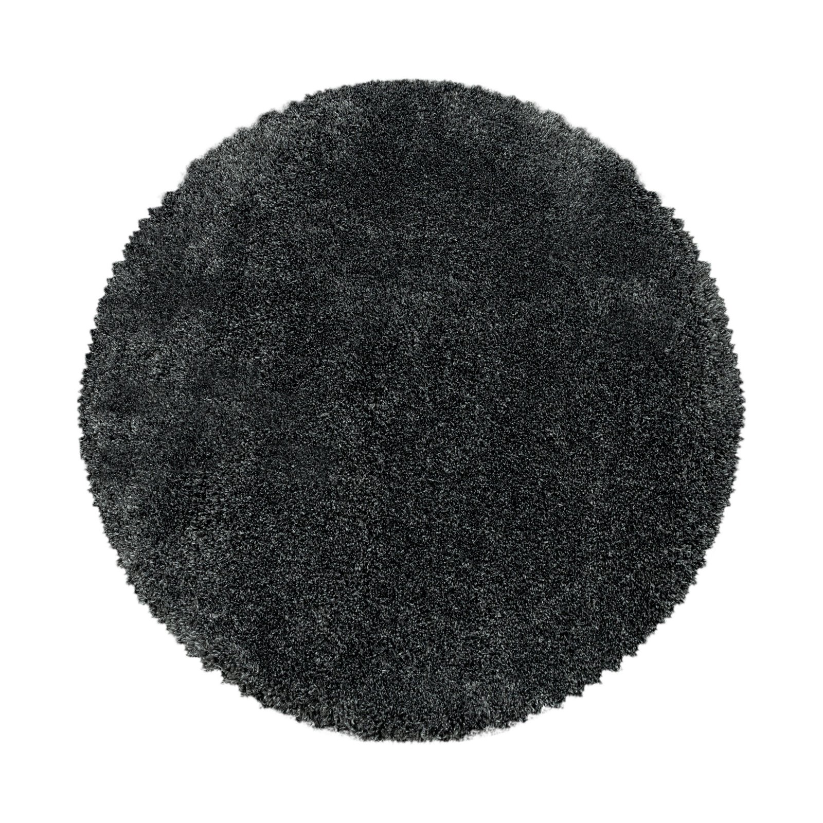 Hochflor Teppich, Unicolor – Einfarbig, Farbe Grau, Teppich für Wohnzimmer, Rücken aus Jute, Größe: 80 cm Rund