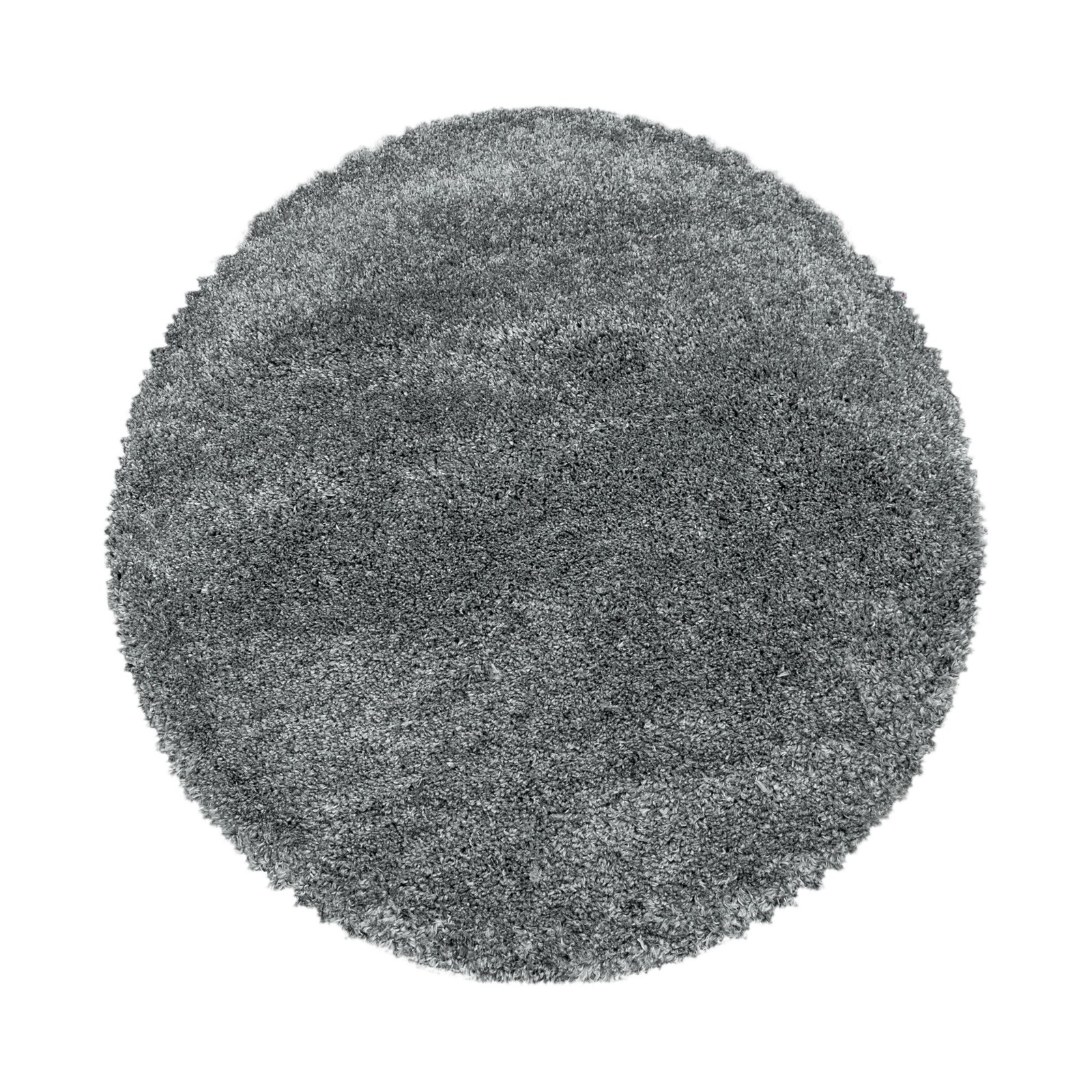Hochflor Teppich, Unicolor – Einfarbig, Farbe Hellgrau, Teppich für Wohnzimmer, Rücken aus Jute, Größe: 80 cm Rund