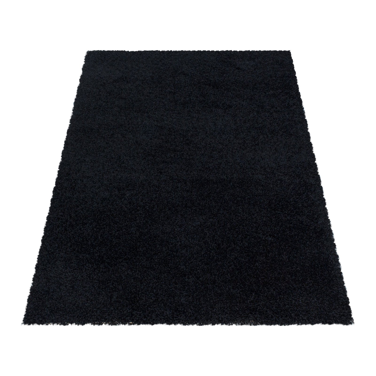 Hochflor Teppich, Unicolor – Einfarbig, Farbe Schwarz, Teppich für Wohnzimmer, Rücken aus Jute, Größe: 80 x 150 cm