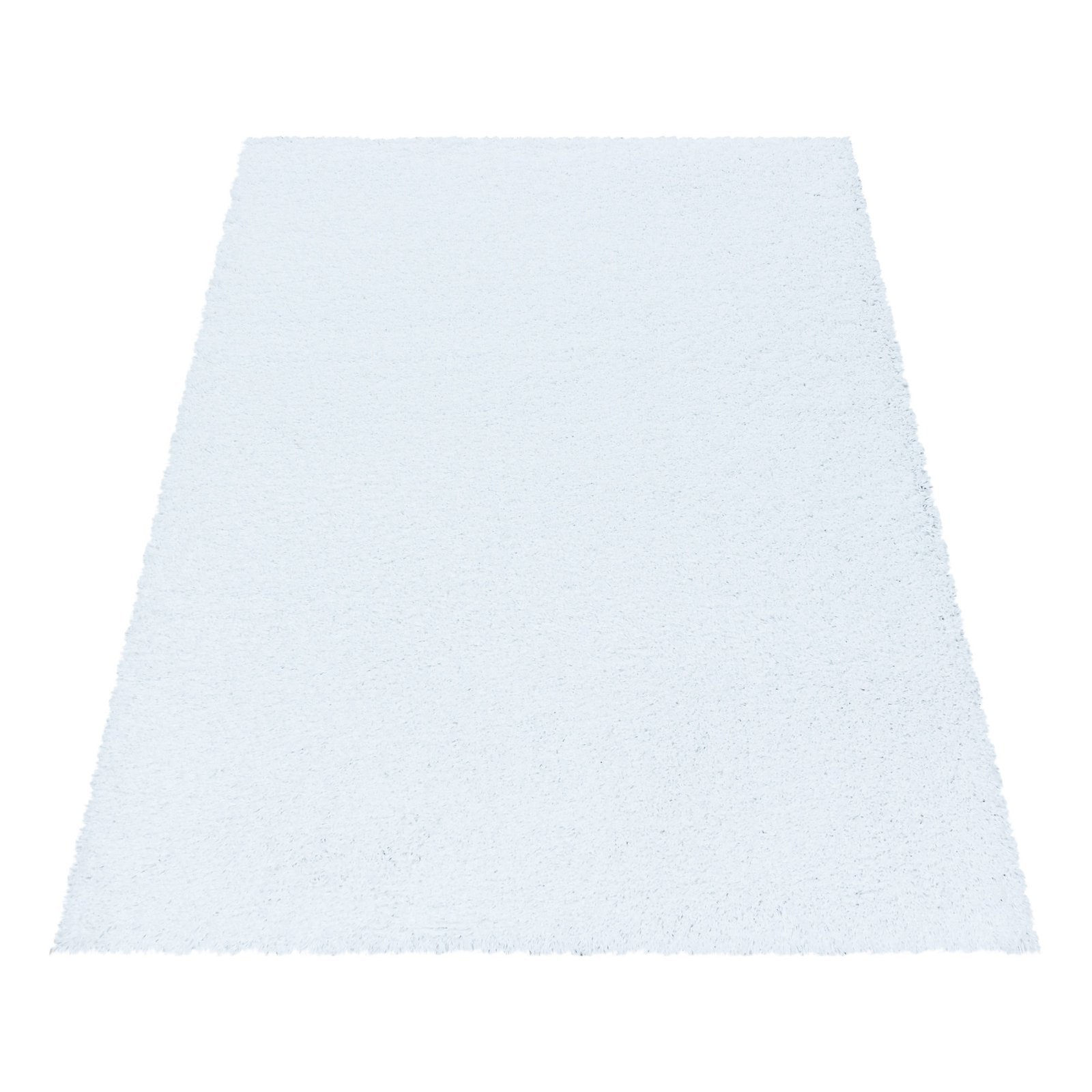 Hochflor Teppich, Unicolor – Einfarbig, Farbe Weiß, Teppich für Wohnzimmer, Rücken aus Jute, Größe: 140 x 200 cm