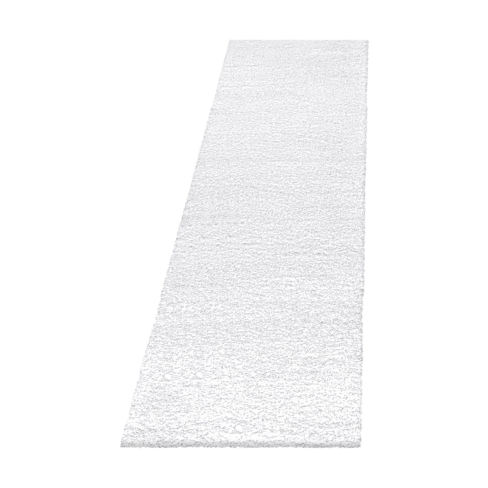 Hochflor Teppich, Unicolor – Einfarbig, Farbe Weiß, Teppich für Wohnzimmer, Rücken aus Jute, Größe: 80 x 250 cm