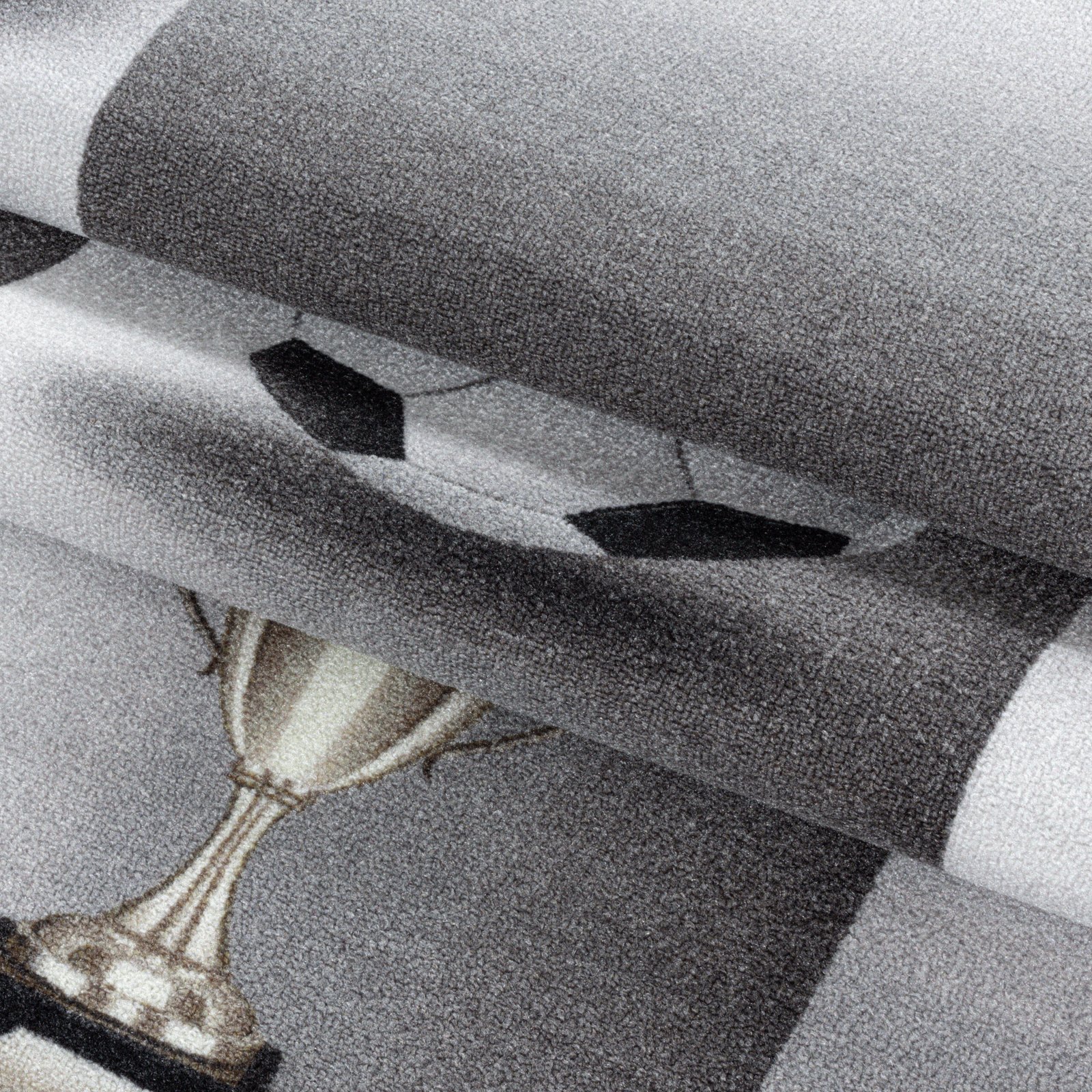 Kinder Teppich, Fußball-Design, Farbe Grau, Teppich für Kinderzimmer, Rücken aus Latex, Größe: 80 x 120 cm