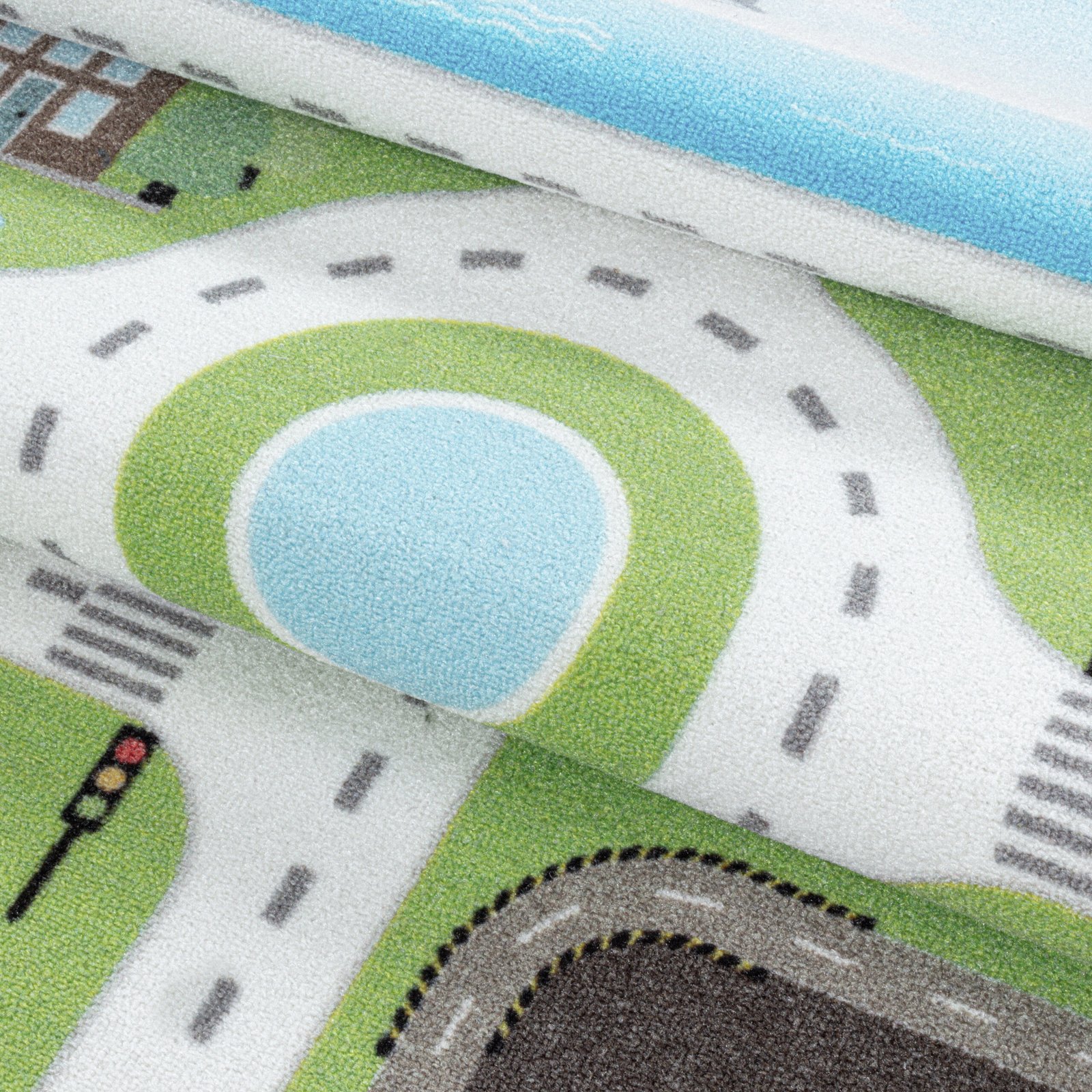 Kinder Teppich, Straßenteppich, Farbe Grün, Teppich für Kinderzimmer, Rücken aus Latex, Größe: 120 cm x 170 cm