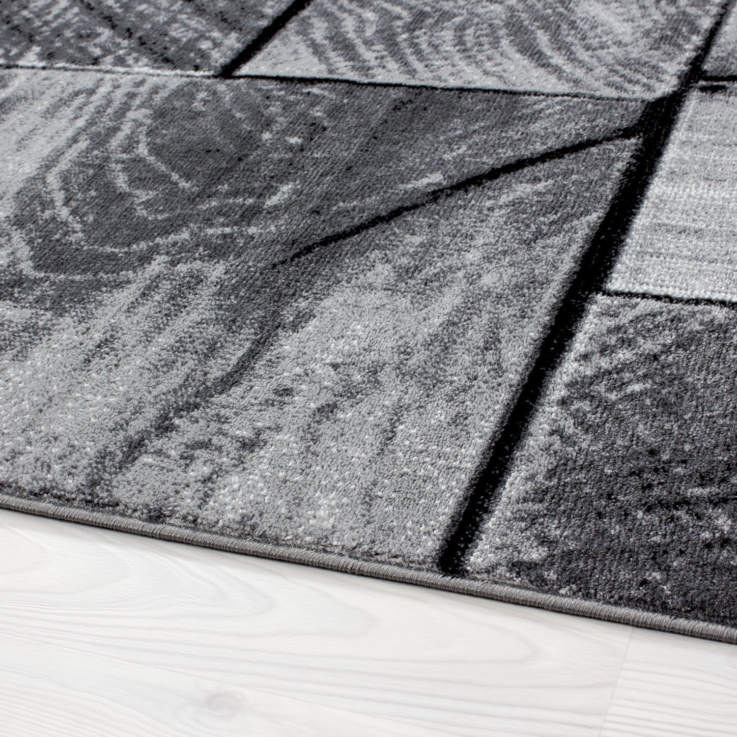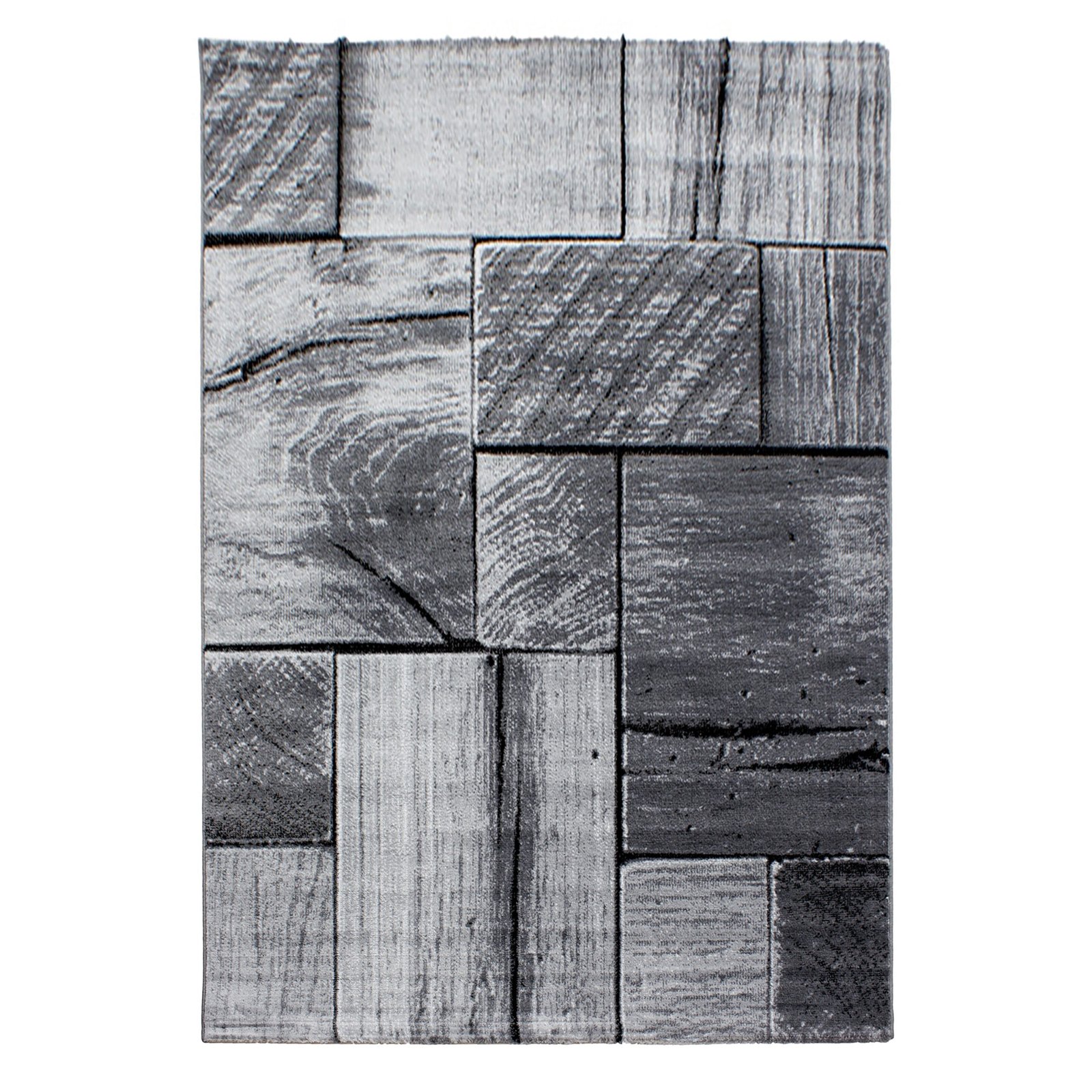 Kurzflor Teppich, 3D-Holzdesign, Farbe Schwarz, Teppich für Wohnzimmer, Rücken aus Jute, Größe: 140 x 200 cm