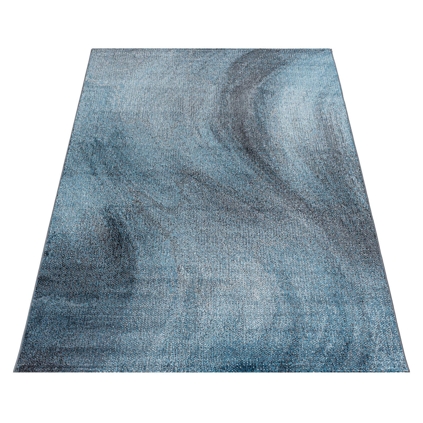 Kurzflor Teppich, Abstrakt Wellen Design, Farbe Blau, Teppich für Wohnzimmer, Rücken aus Jute, Größe: 120 cm x 170 cm