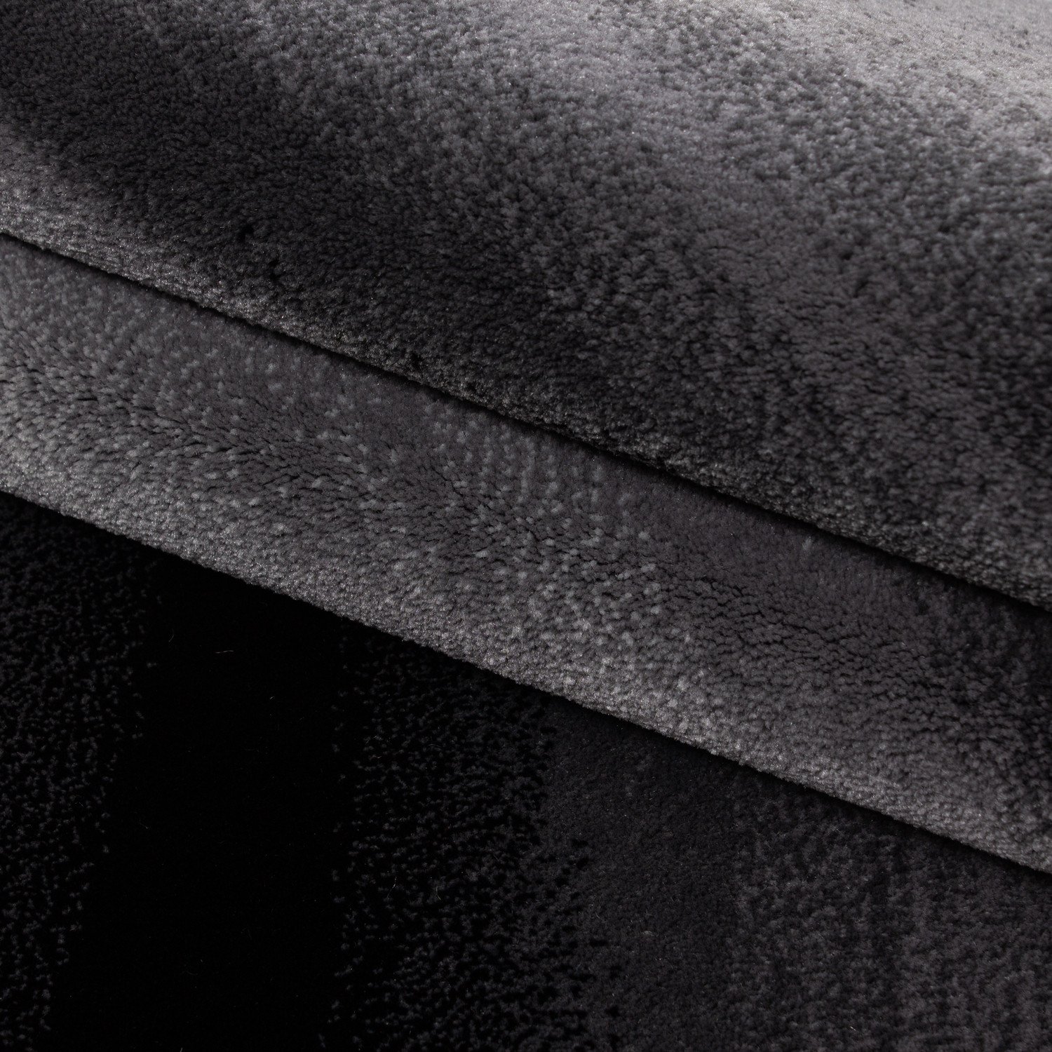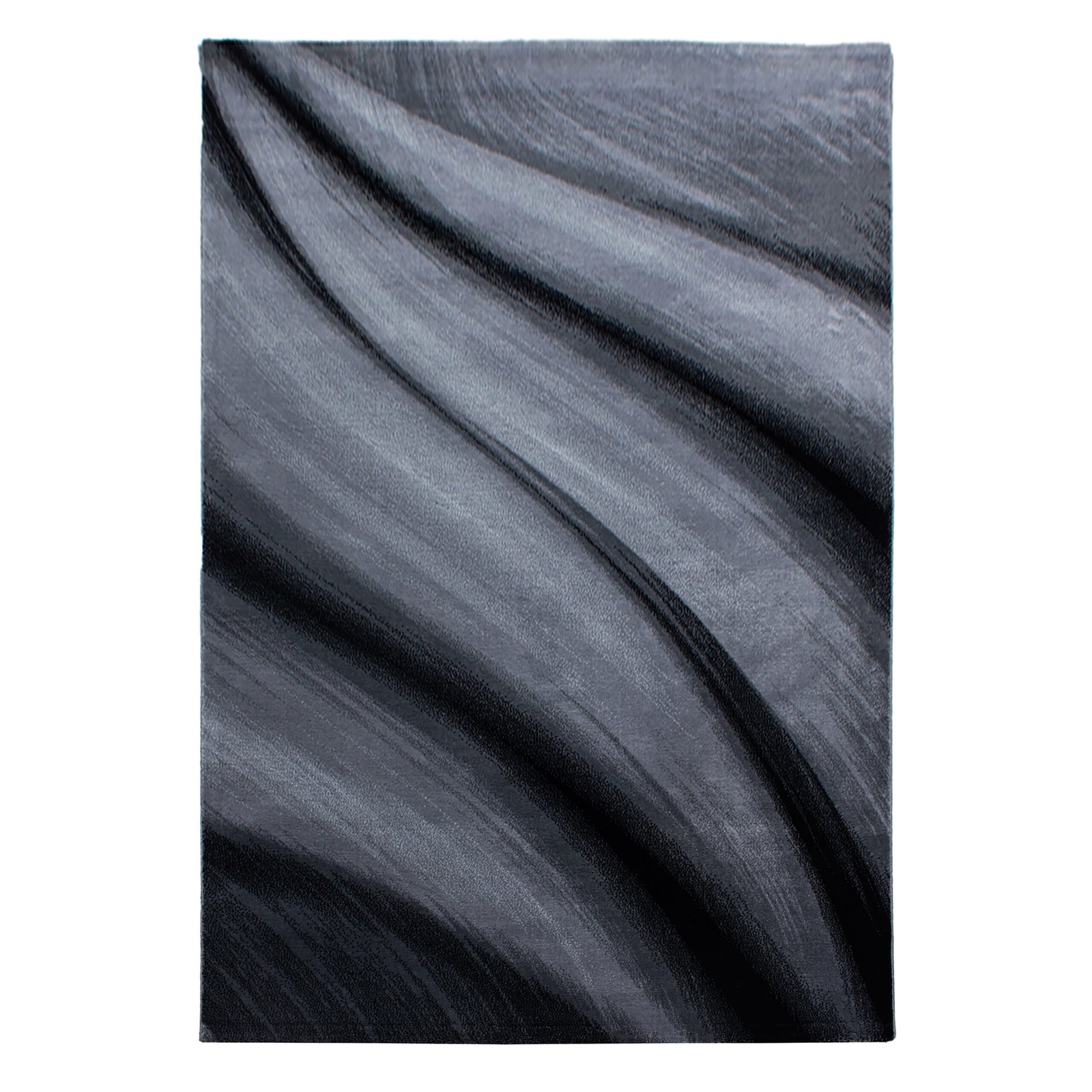 Kurzflor Teppich, Abstrakt Wellen Design, Farbe Schwarz, Teppich für Wohnzimmer, Rücken aus Jute, Größe: 140 x 200 cm