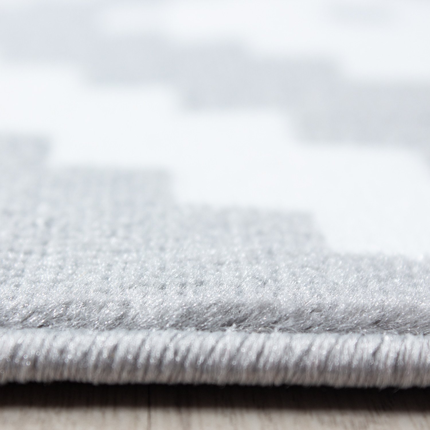 Kurzflor Teppich, Geometrisch Design, Farbe Grau, Teppich für Wohnzimmer, Rücken aus Jute, Größe: 280 x 370 cm