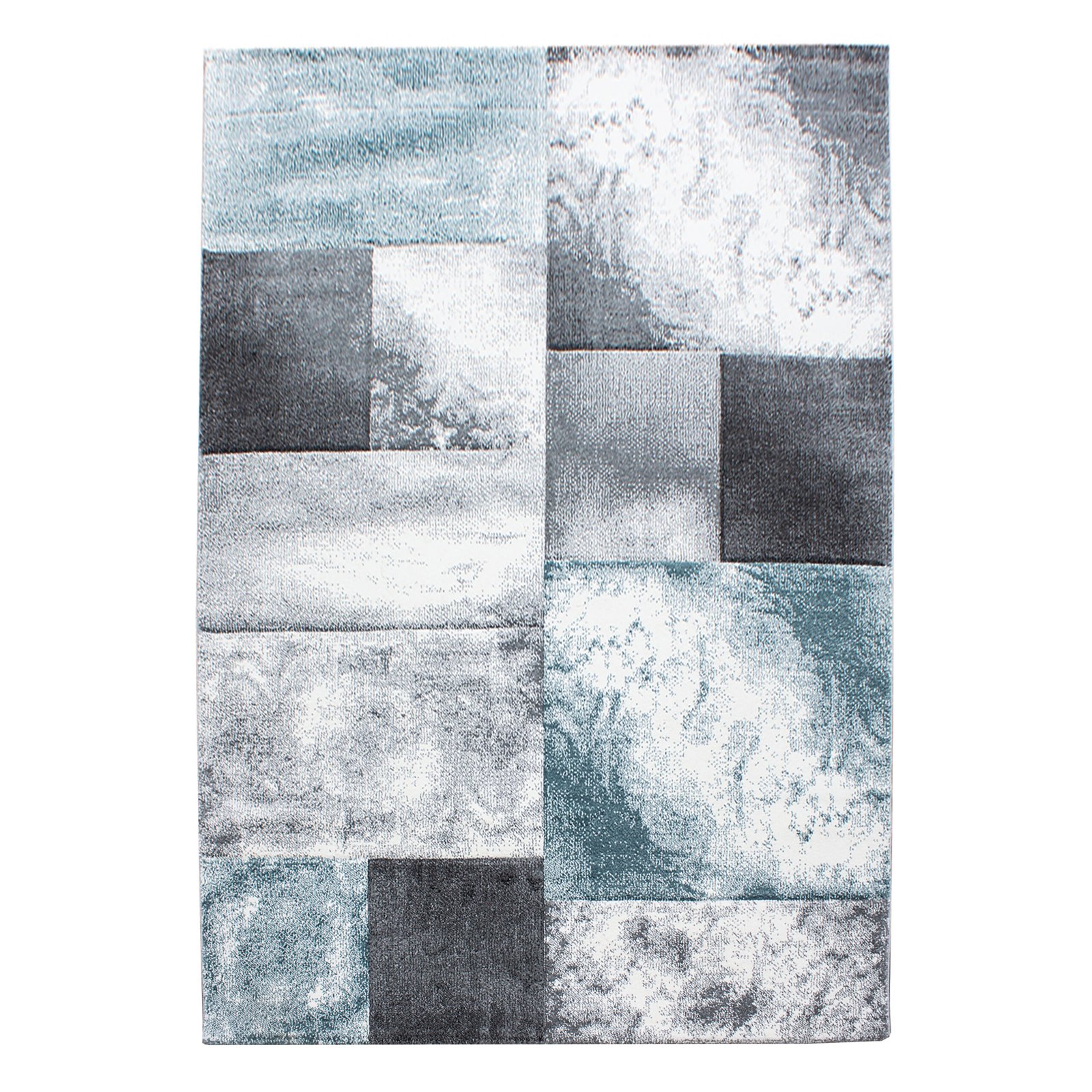 Kurzflor Teppich, Kariert Design, Farbe Blau, Teppich für Wohnzimmer, Rücken aus Jute, Größe: 160 cm x 230 cm