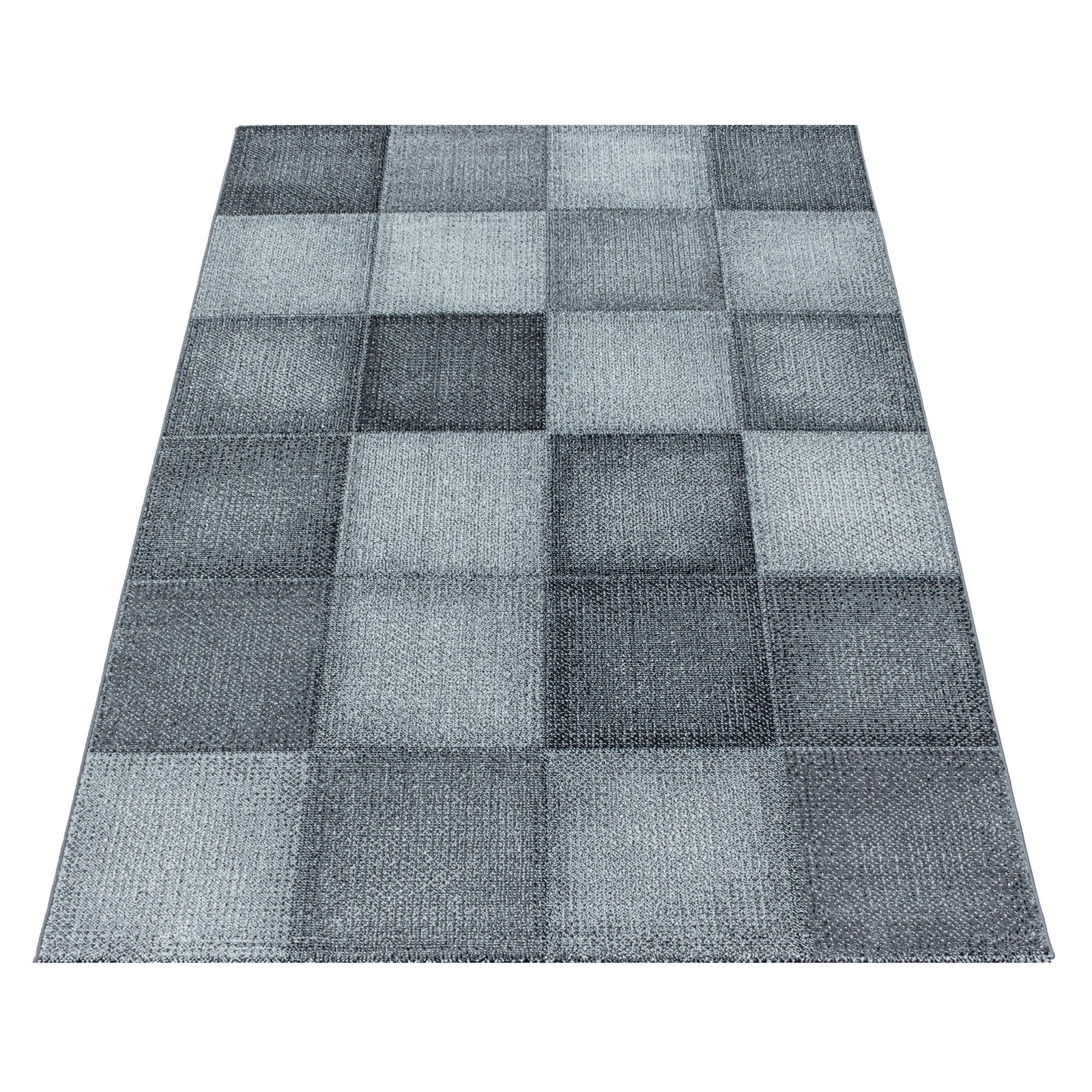 Kurzflor Teppich, Kariert Design, Farbe Grau, Teppich für Wohnzimmer, Rücken aus Jute, Größe: 120 cm x 170 cm