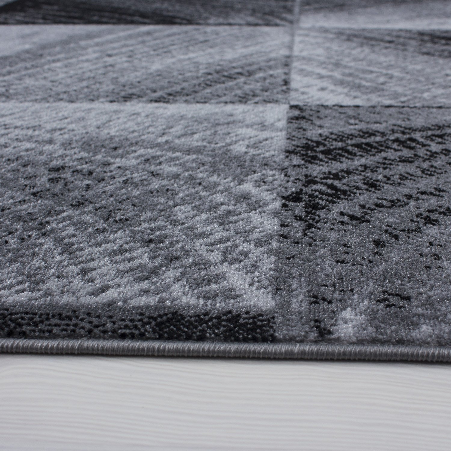 Kurzflor Teppich, Kariert Design, Farbe Schwarz, Teppich für Wohnzimmer, Rücken aus Jute, Größe: 200 cm x 290 cm