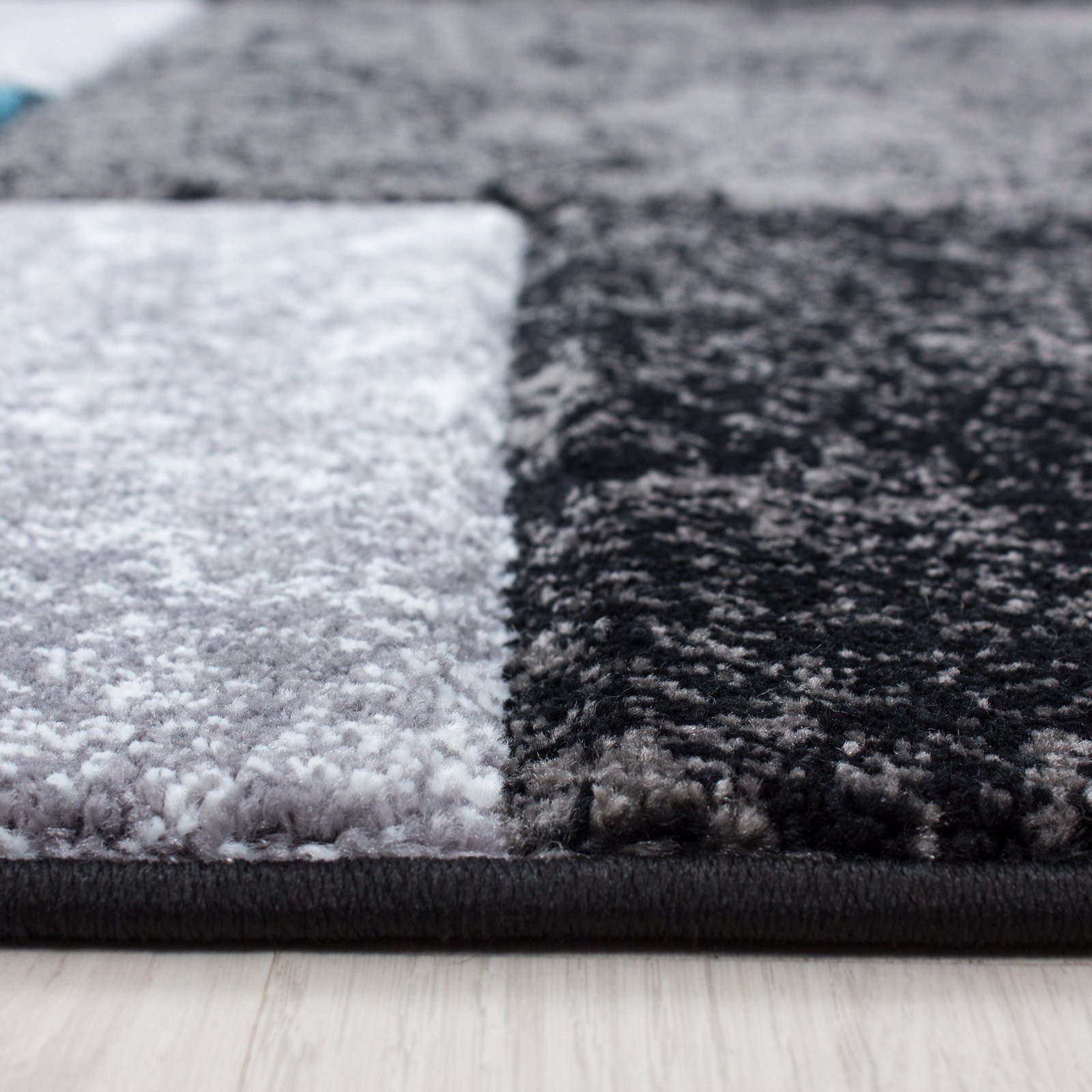 Kurzflor Teppich, Kariert Design, Farbe Türkis, Teppich für Wohnzimmer, Rücken aus Jute, Größe: 240 x 340 cm