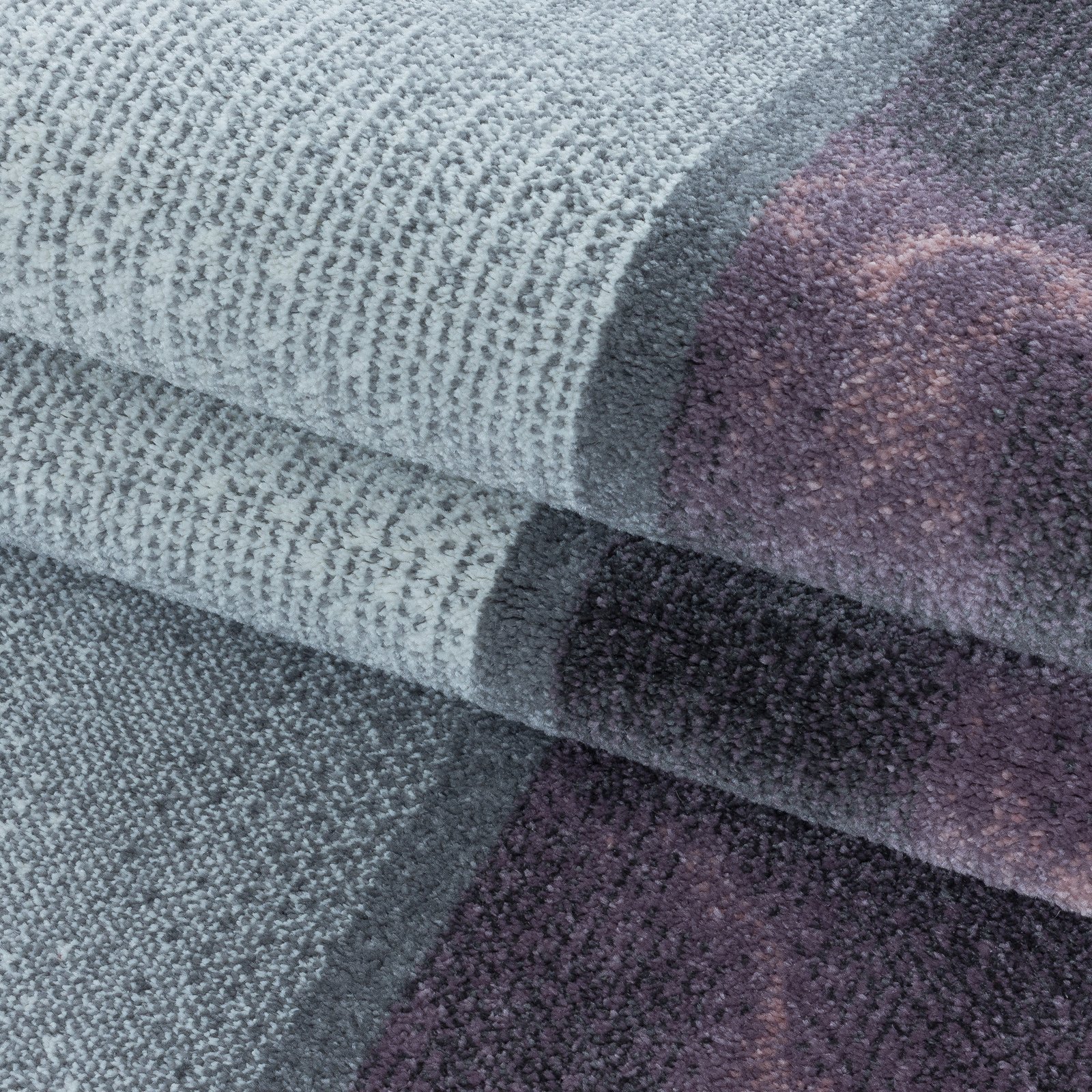 Kurzflor Teppich, Kariert Design, Farbe Violett, Teppich für Wohnzimmer, Rücken aus Jute, Größe: 140 x 200 cm