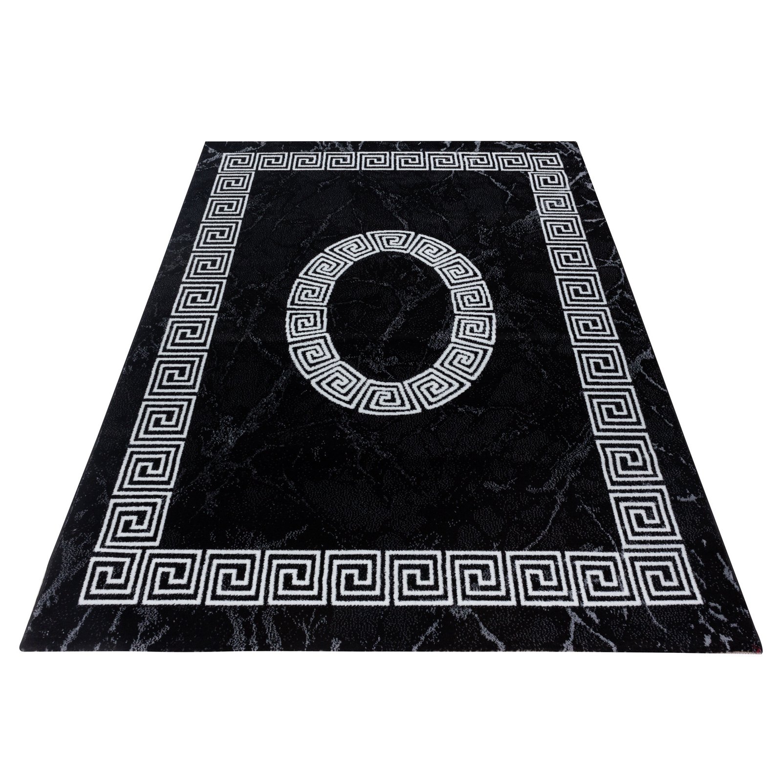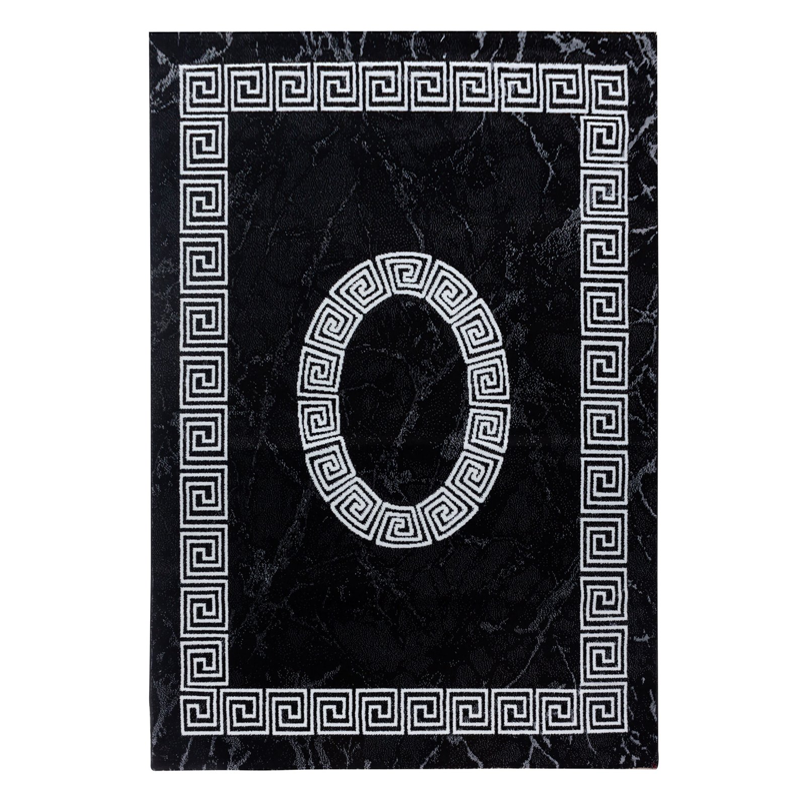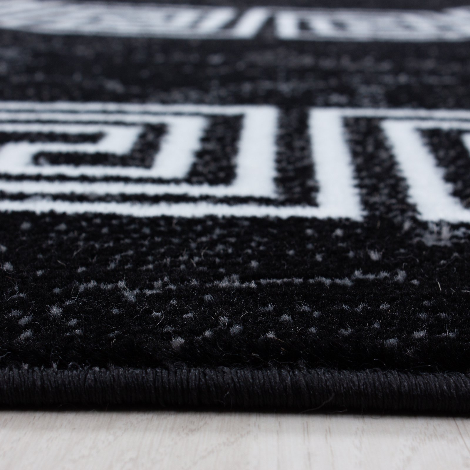 Kurzflor Teppich, Mäander-Design, Farbe Schwarz, Teppich für Wohnzimmer, Rücken aus Jute, Größe: 120 cm x 170 cm