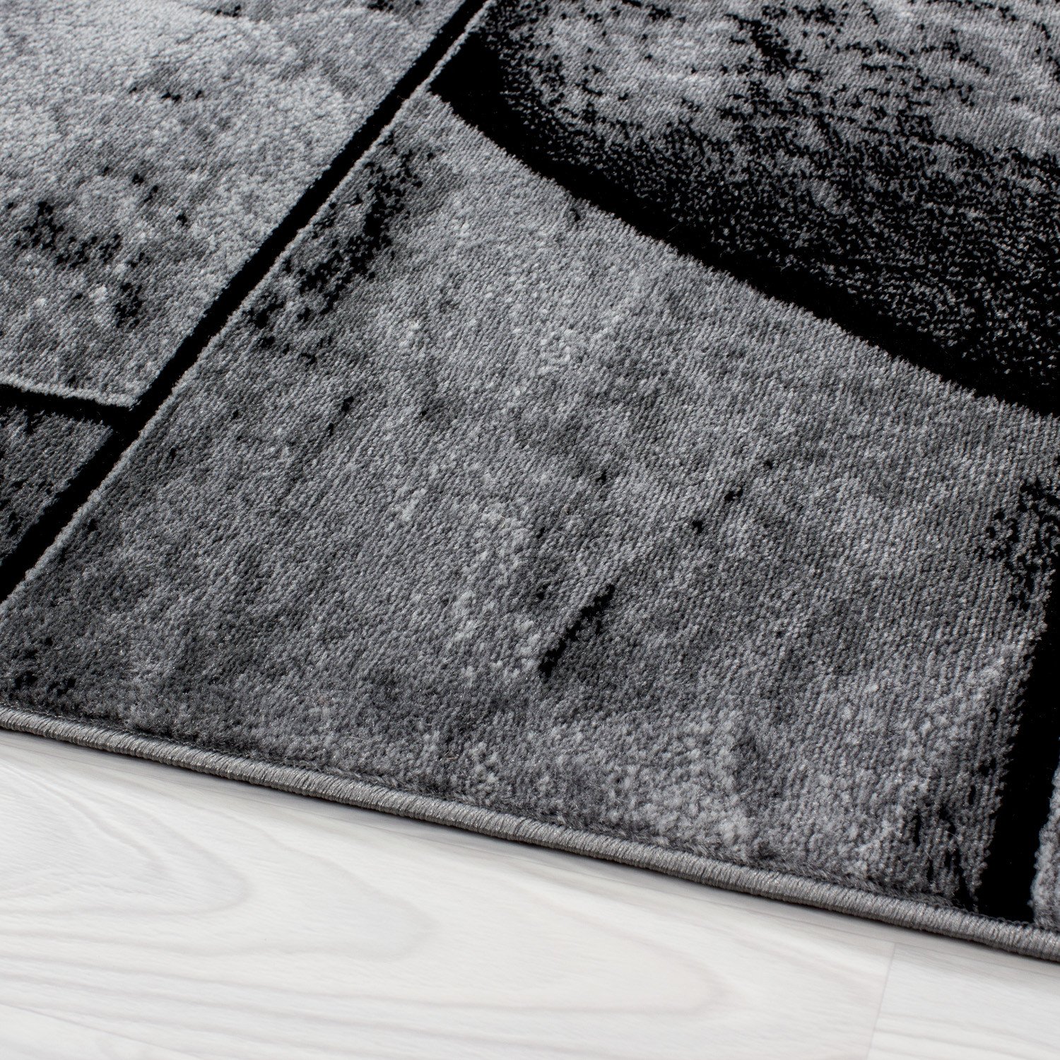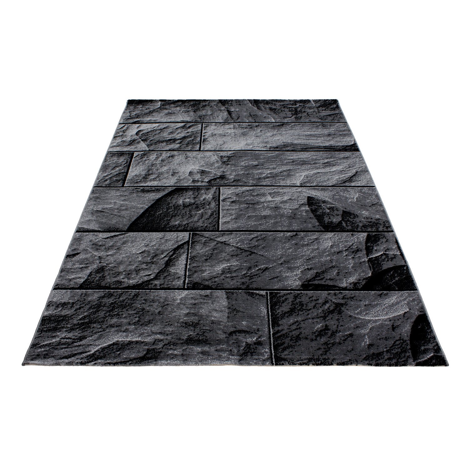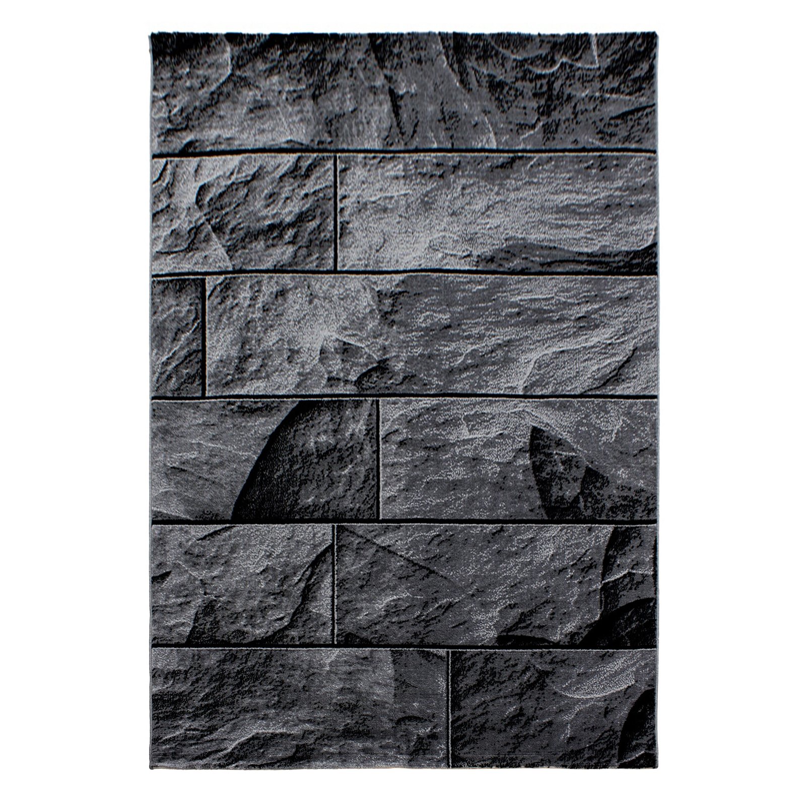 Kurzflor Teppich, Steindesign, Farbe Schwarz, Teppich für Wohnzimmer, Rücken aus Jute, Größe: 140 x 200 cm