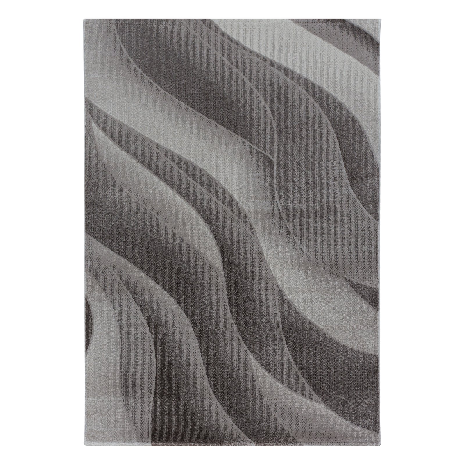 Kurzflor Teppich, Wellen Design, Farbe Braun, Teppich für Wohnzimmer, Rücken aus Jute, Größe: 140 x 200 cm