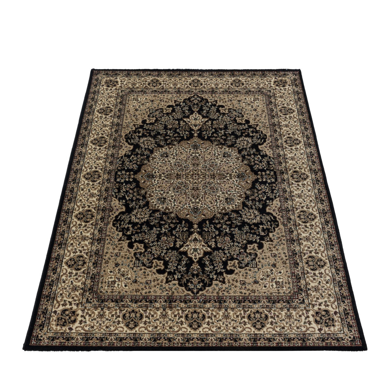 Orient Teppich, Orientalisch Design, Farbe Schwarz, Teppich für Wohnzimmer, Rücken aus Jute, Größe: 120 cm x 170 cm