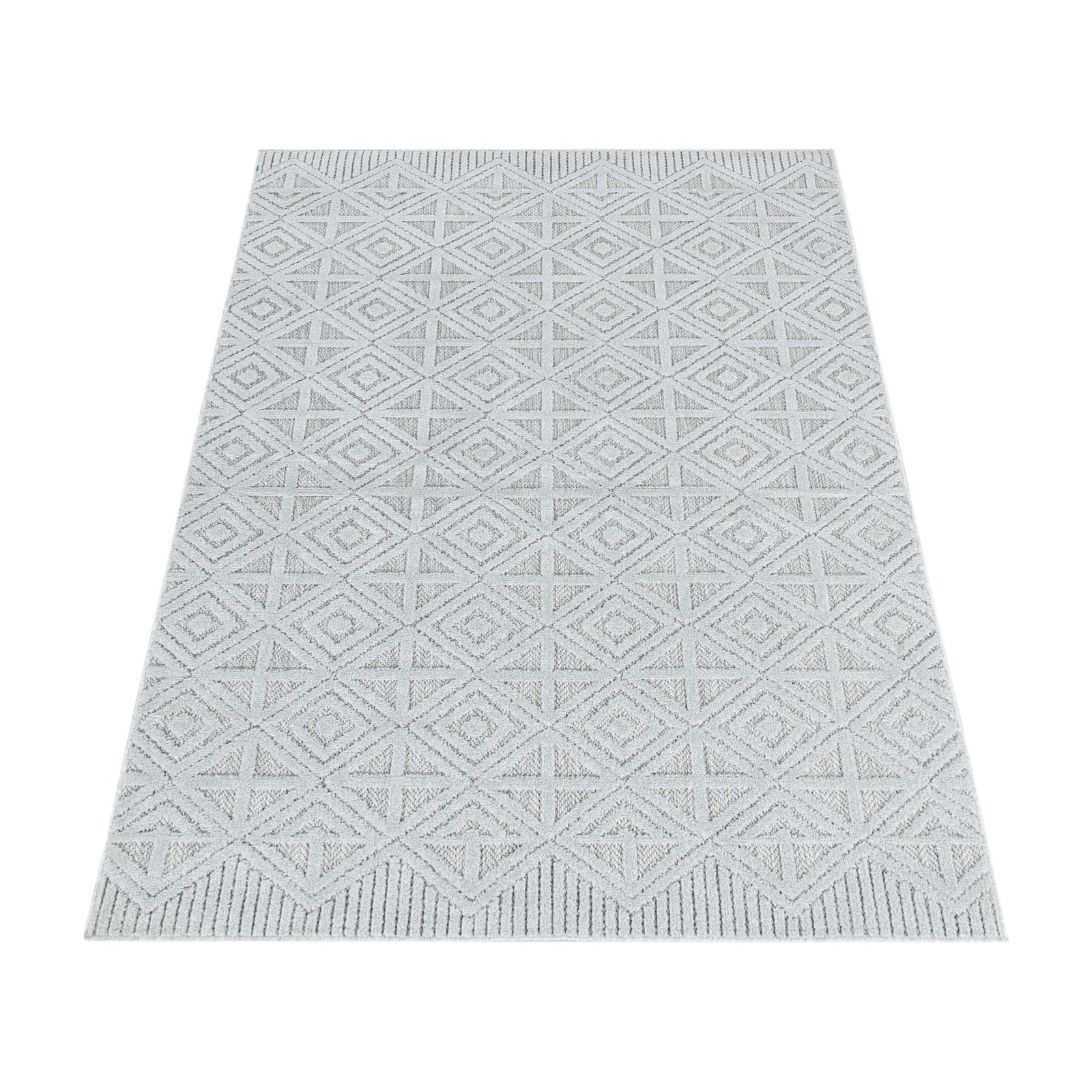 Outdoor Teppich, Boho-Design, Farbe Grau, Teppich für Terasse-Balkon-Küche, Rücken aus Polypropylen, Größe: 140 x 200 cm
