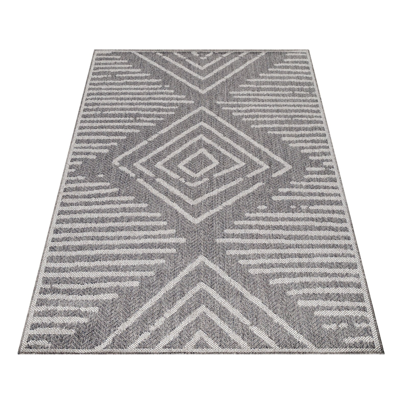 Outdoor Teppich, Gestreift Design, Farbe Grau, Teppich für Terasse-Balkon-Küche, Rücken aus Polypropylen, Größe: 60 x 100 cm