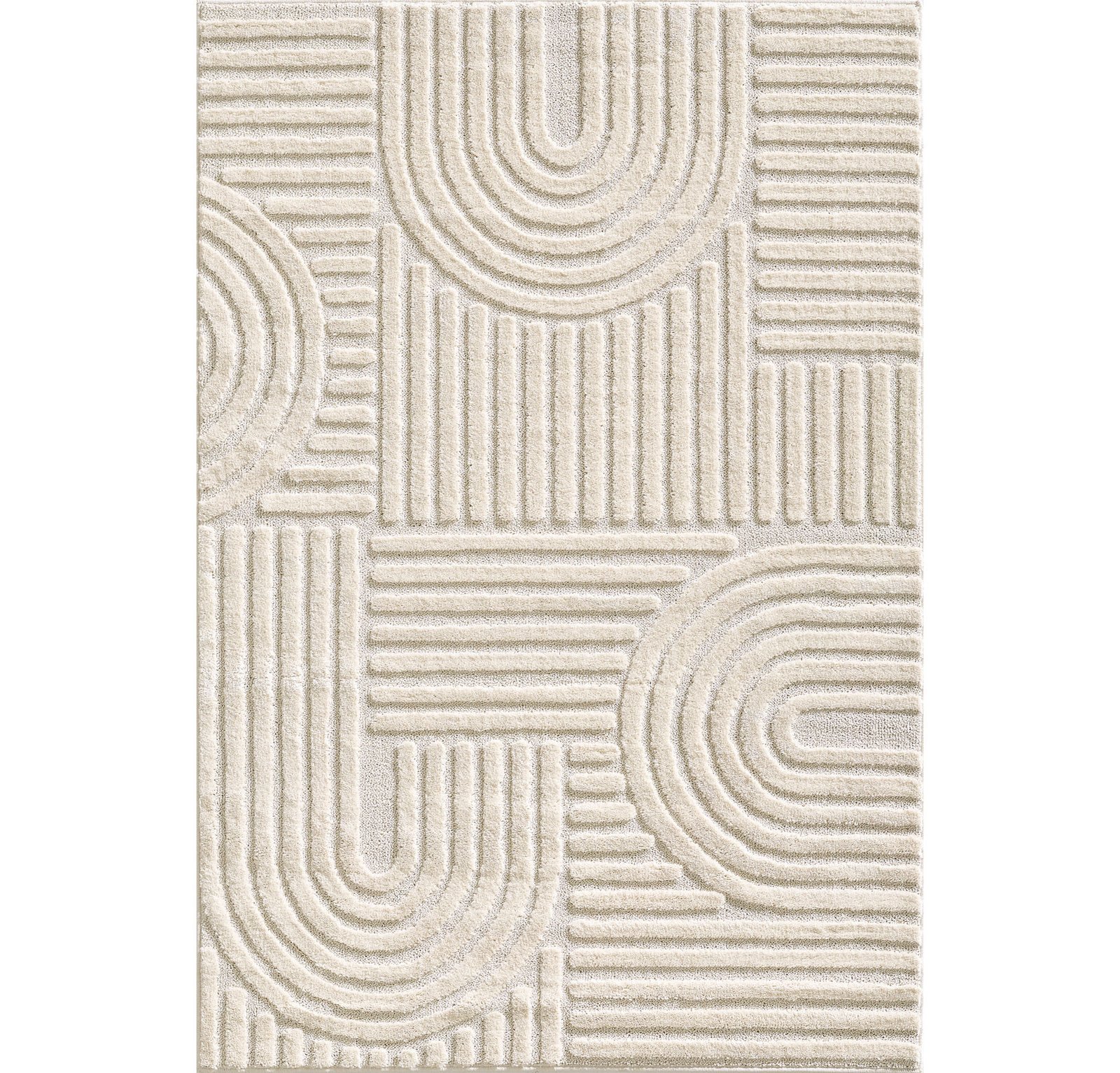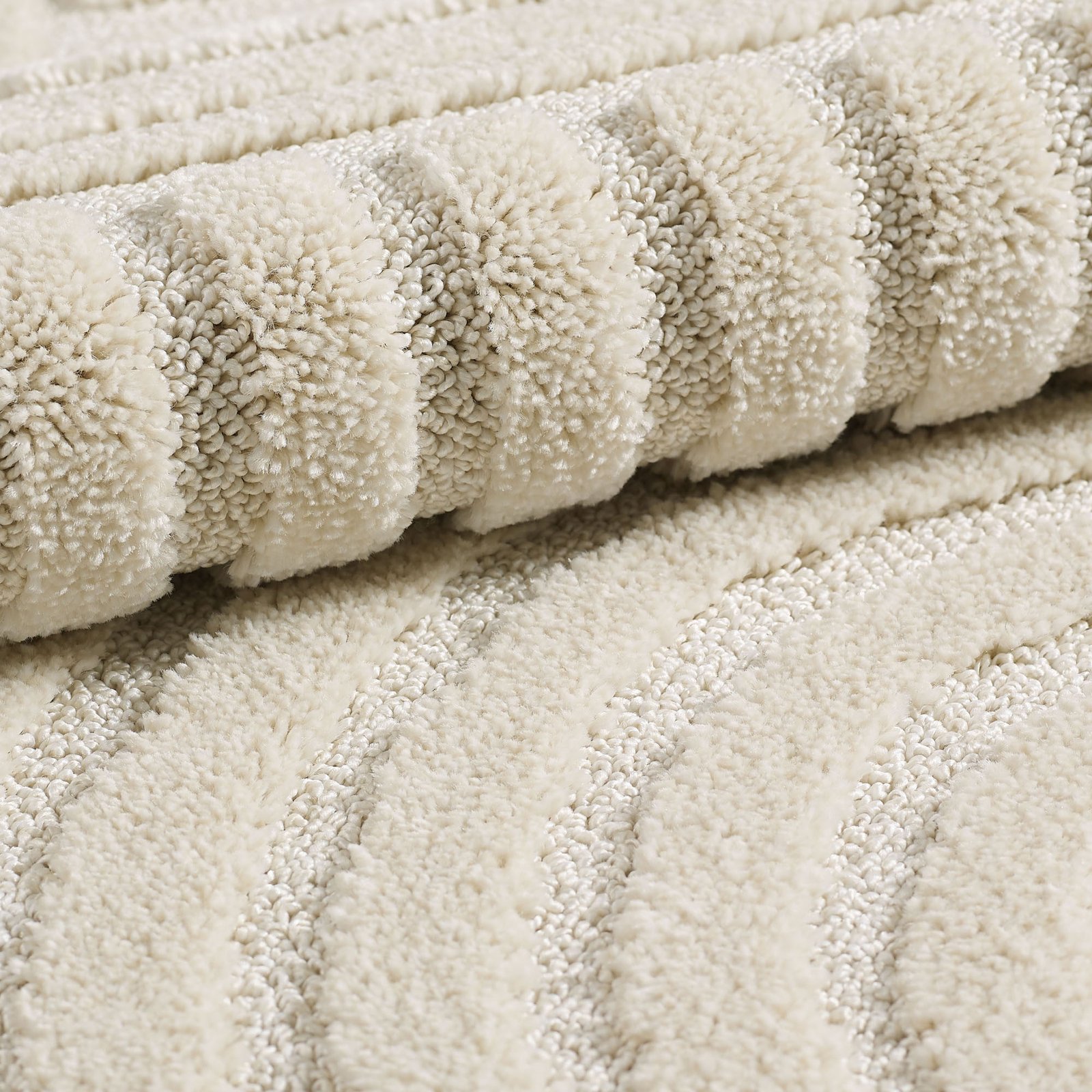 Hochflor Teppich, Skandinavischer Boho, Farbe Creme, Teppich für Wohnzimmer, Rücken aus Jute, Größe: 160 x 230 cm