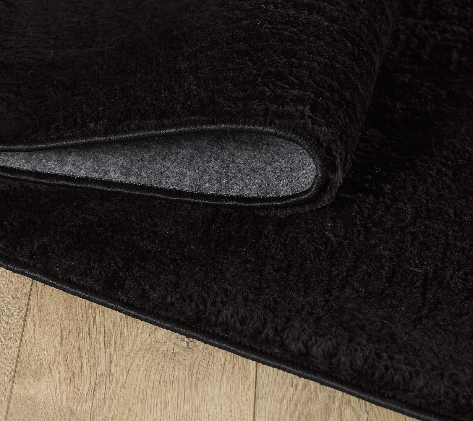Waschbarer Teppich, Unicolor – Einfarbig, Farbe Schwarz, Teppich für Wohnzimmer, Rücken aus Filz, Größe: 80 cm Rund