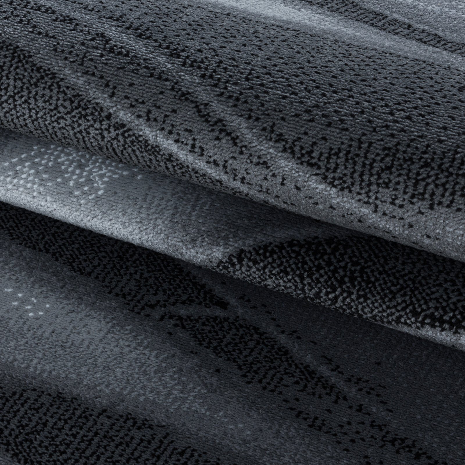 Kurzflor Teppich, Wellen Design, Farbe Schwarz, Teppich für Wohnzimmer, Rücken aus Jute, Größe: 140 x 200 cm