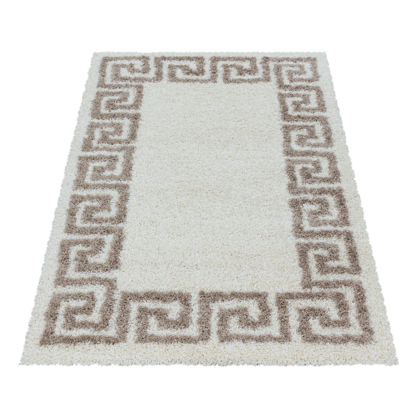 Hochflor Teppich, Mäander-Design, Farbe Beige, Teppich für Wohnzimmer, Rücken aus Jute, Größe: 240 x 340 cm