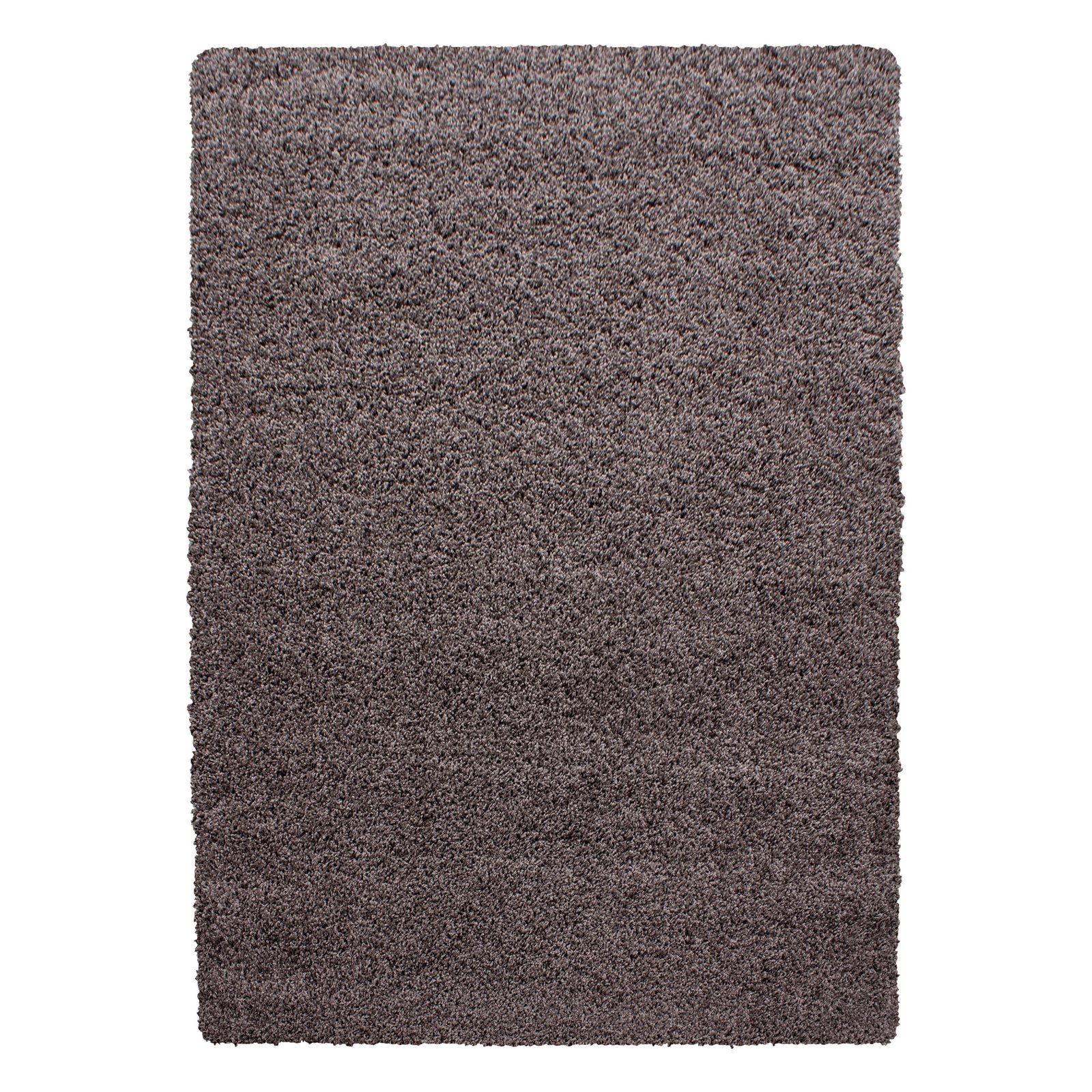 Hochflor Teppich, Unicolor – Einfarbig, Farbe Taupe, Teppich für Wohnzimmer, Rücken aus Jute, Größe: 100 cm x 200 cm