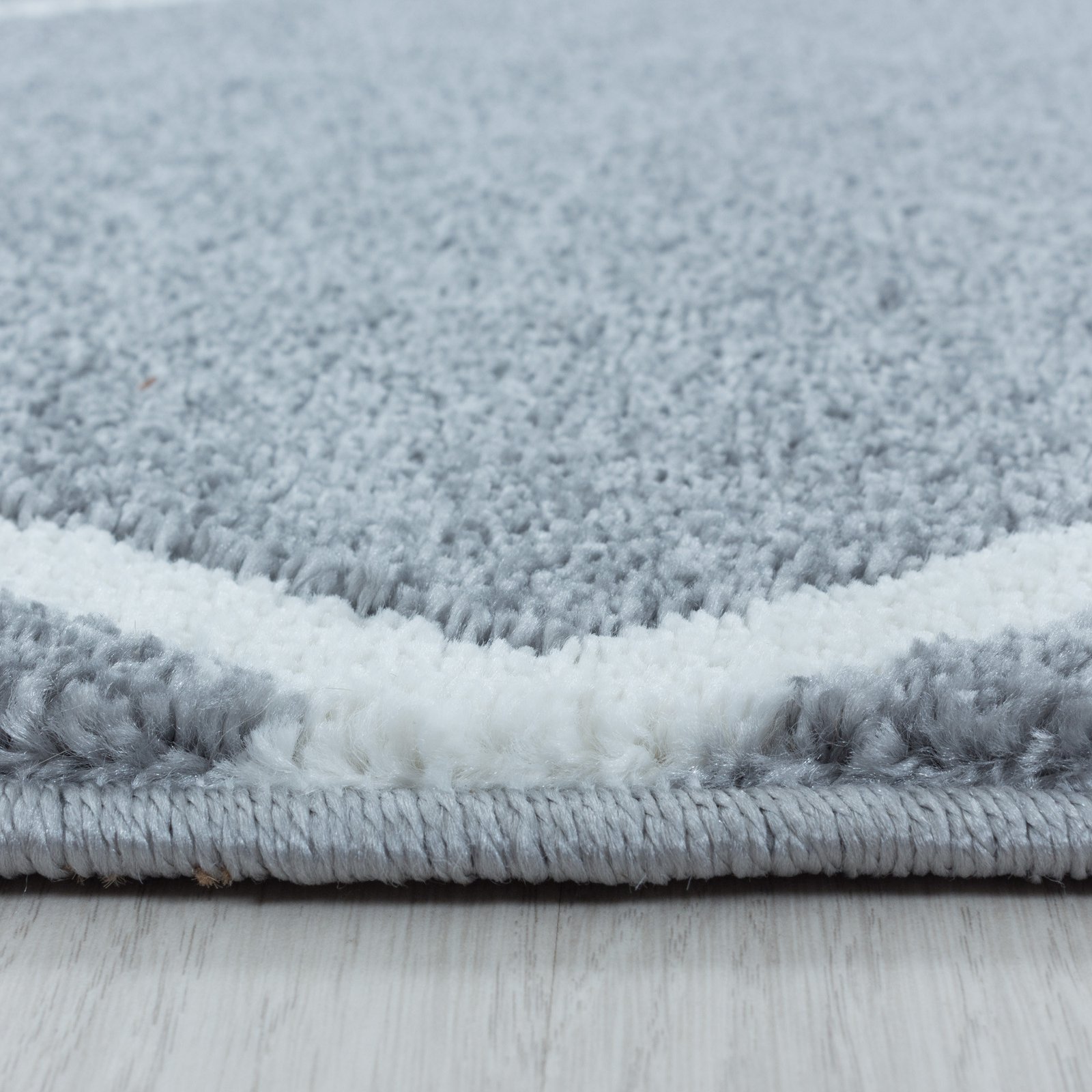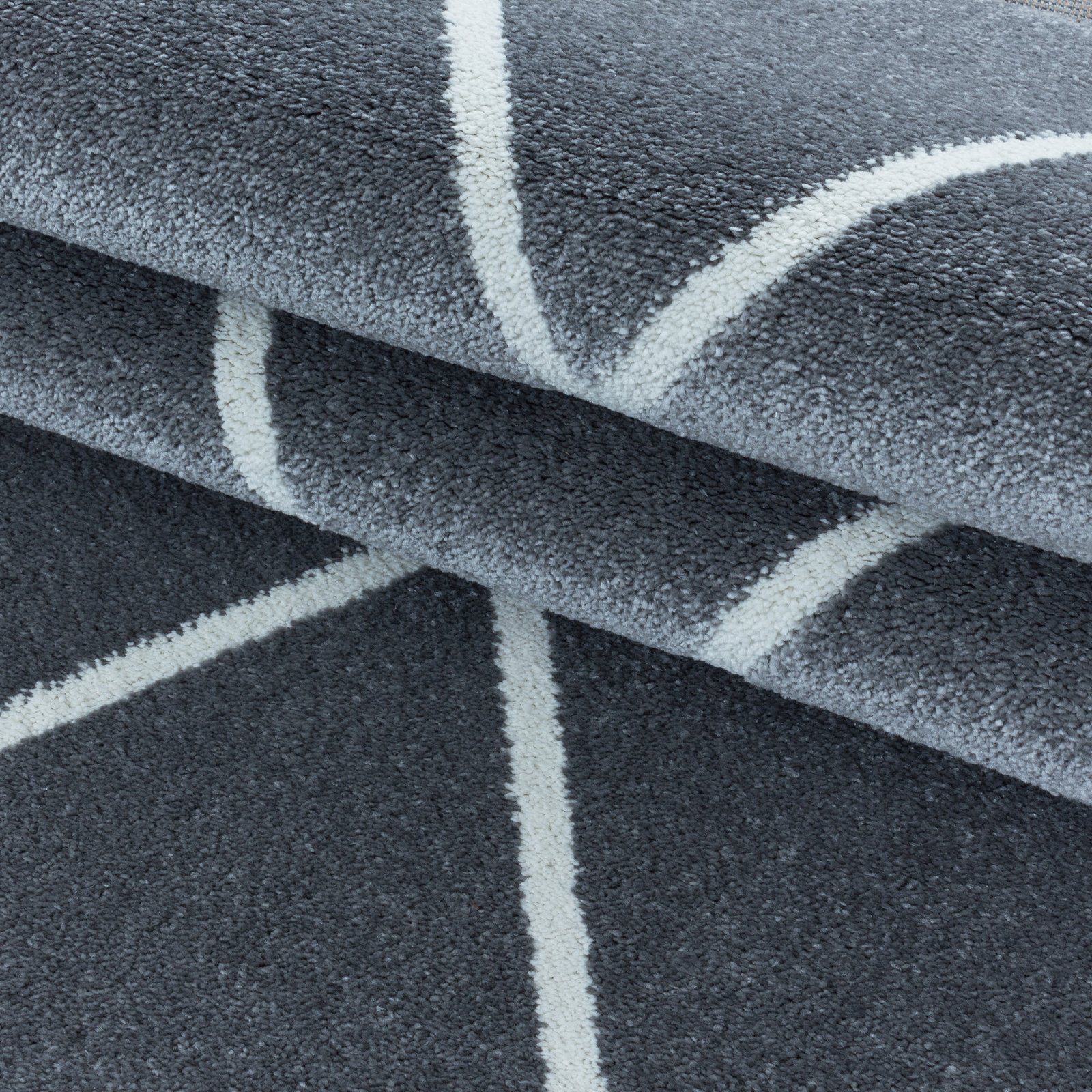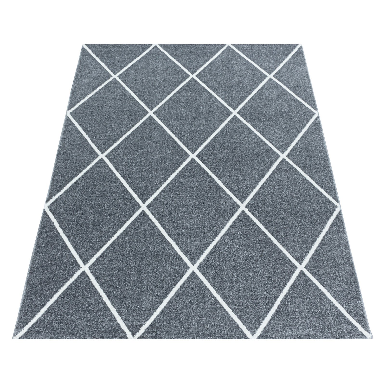 Kurzflor Teppich, Geometrisch Design, Farbe Silber, Teppich für Wohnzimmer, Rücken aus Jute, Größe: 80 x 150 cm