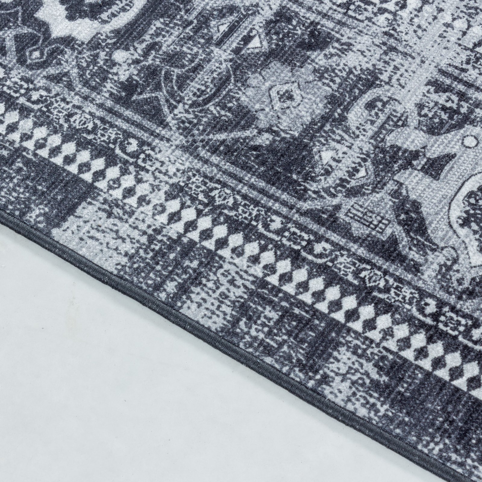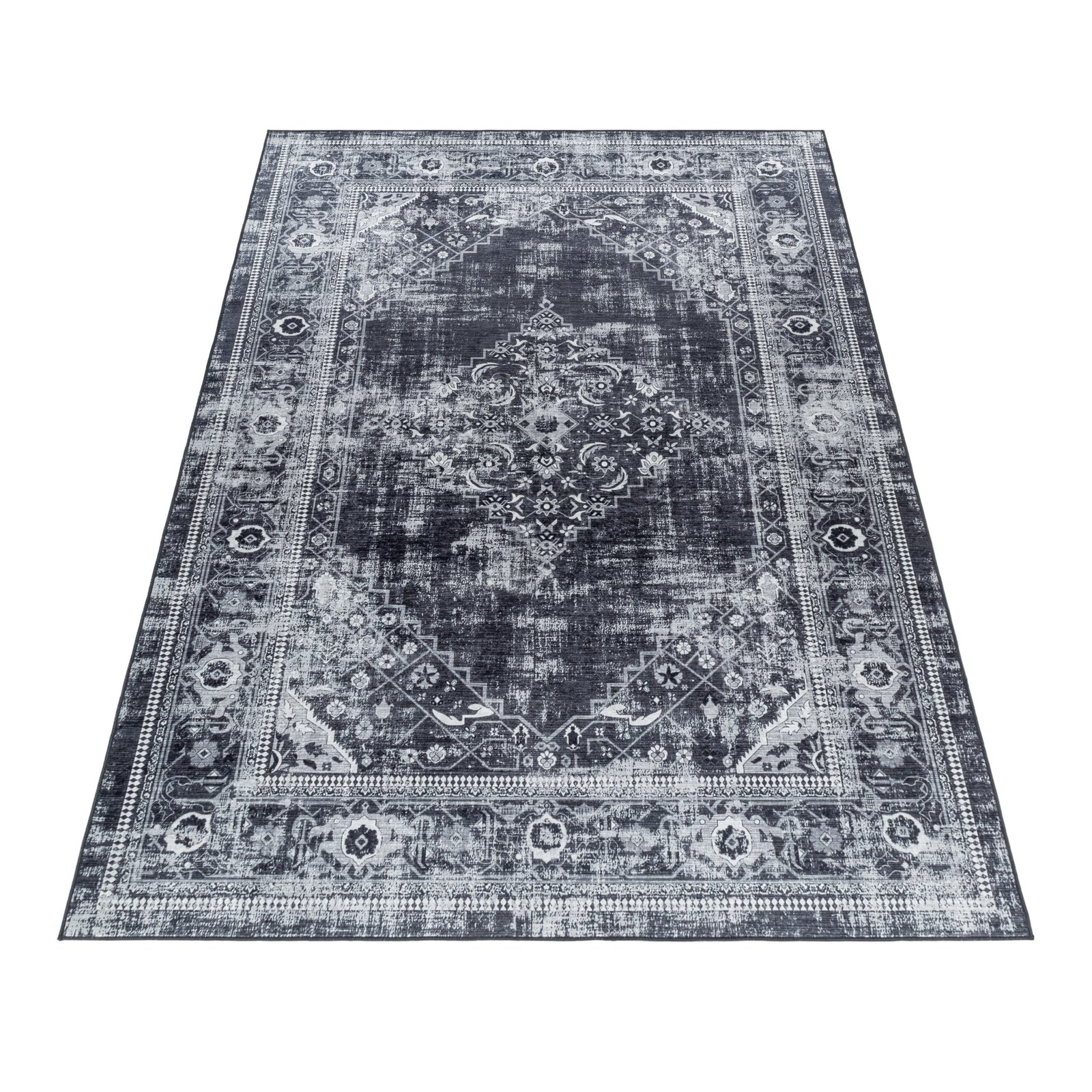 Waschbarer Teppich, Orientalisch Design, Farbe Schwarz, Teppich für Wohnzimmer, Rücken aus Canvas, Größe: 160 cm x 230 cm
