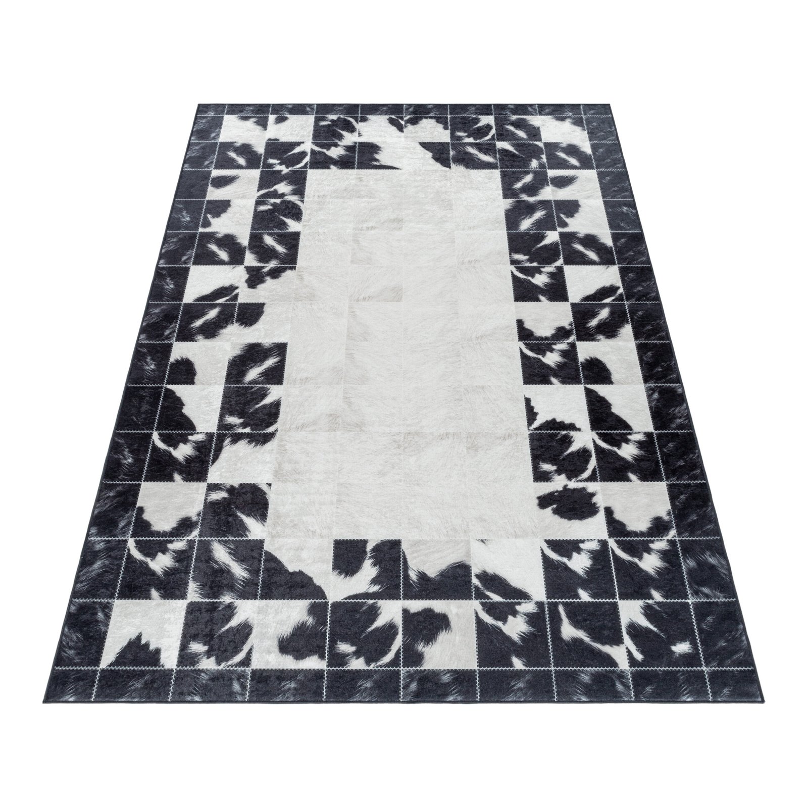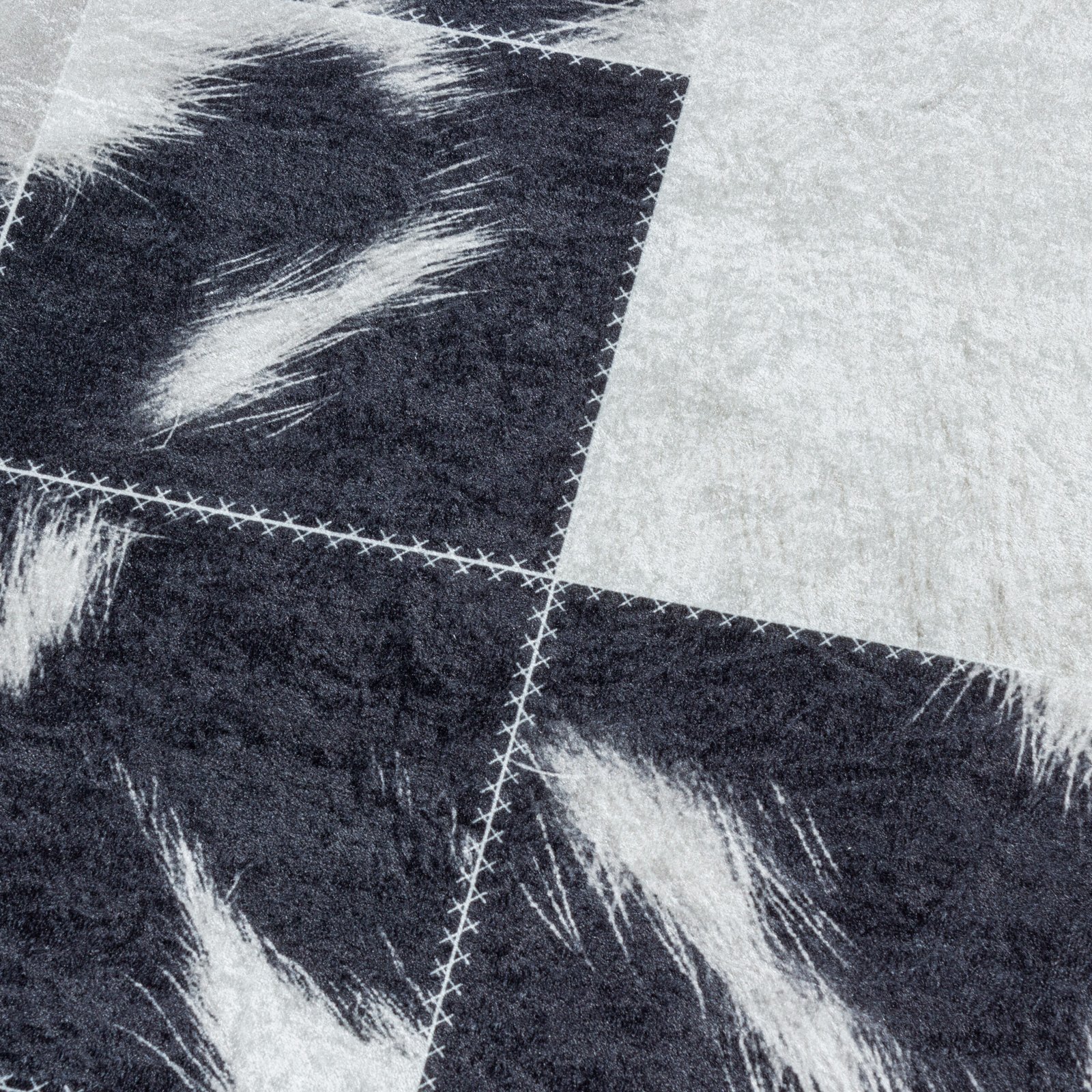 Waschbarer Teppich, Patchwork Design, Farbe Schwarz, Teppich für Wohnzimmer, Rücken aus Canvas, Größe: 200 cm x 290 cm