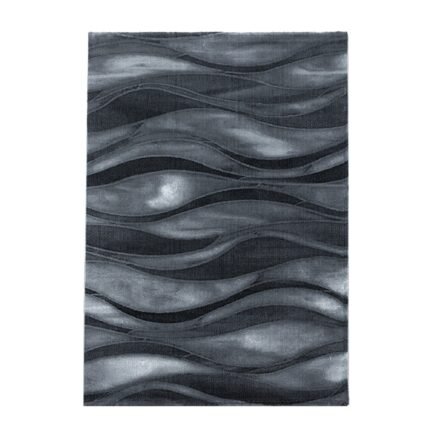 Kurzflor Teppich, Wellen Design, Farbe Schwarz, Teppich für Wohnzimmer, Rücken aus Jute, Größe: 120 cm x 170 cm