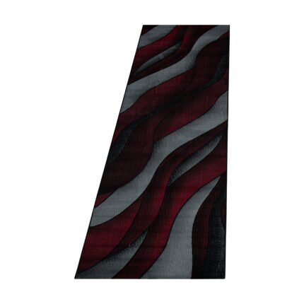 Kurzflor Teppich, Wellen Design, Farbe Rot, Teppich für Wohnzimmer, Rücken aus Jute, Größe: 80 x 250 cm